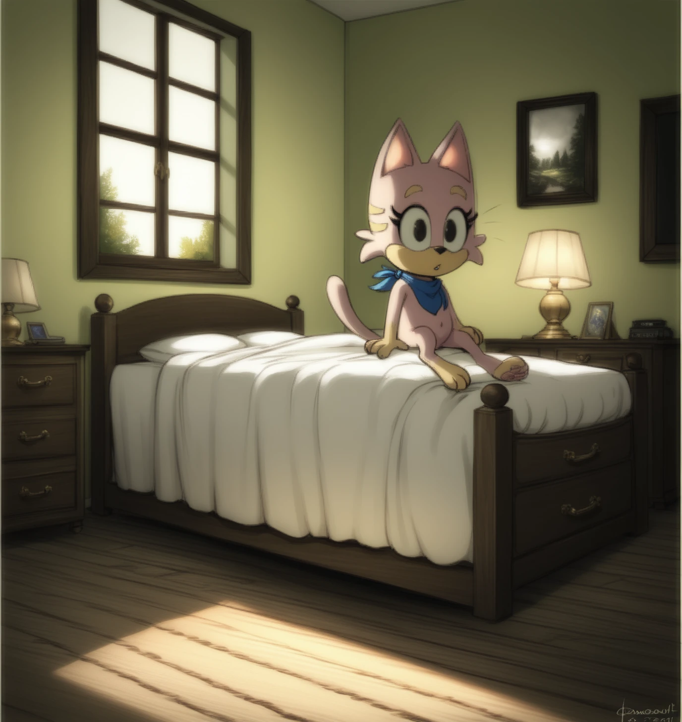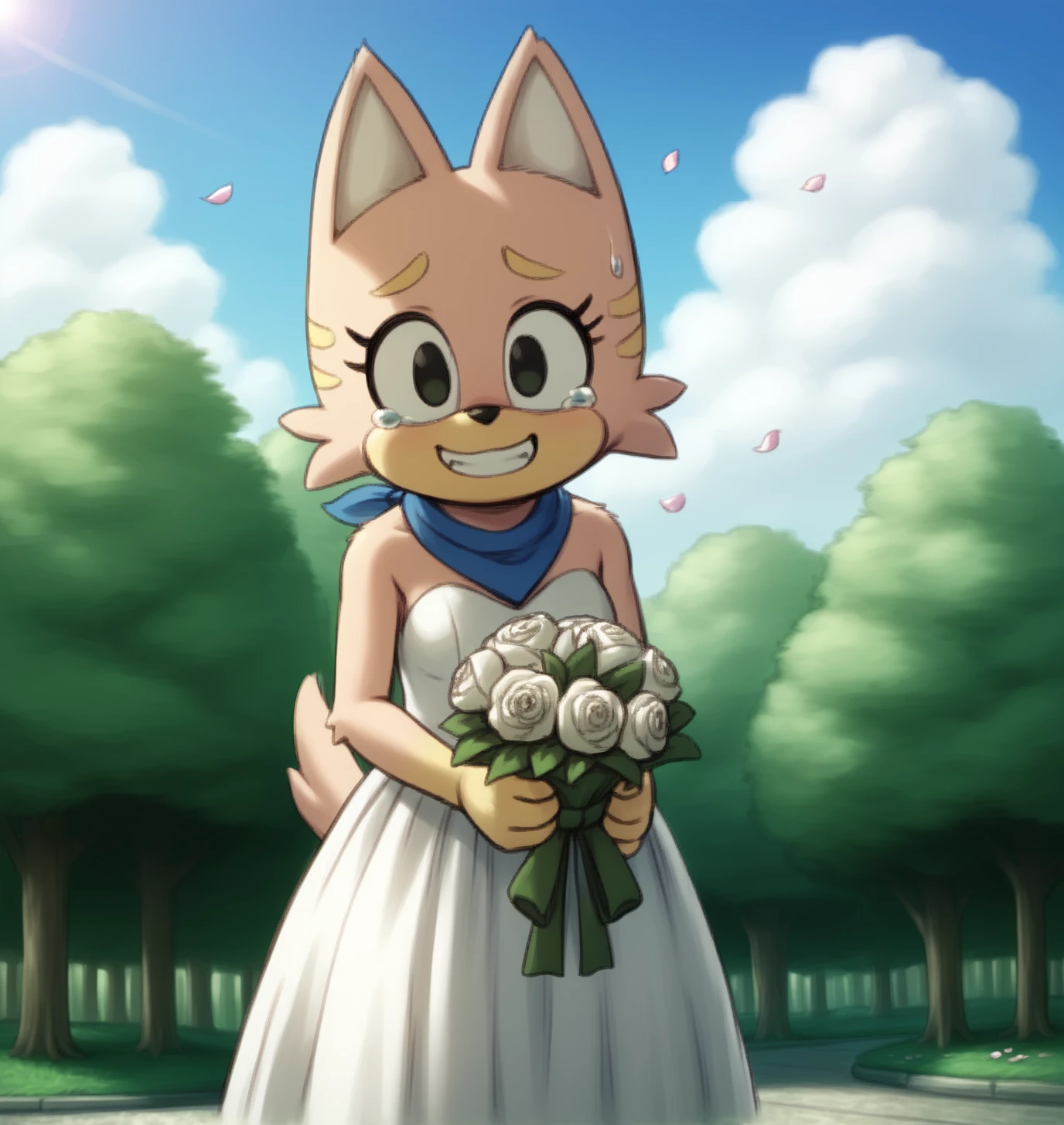 1girl, furry, animal ears, black eyes, meowkie, neckerchief, tail, body fur,