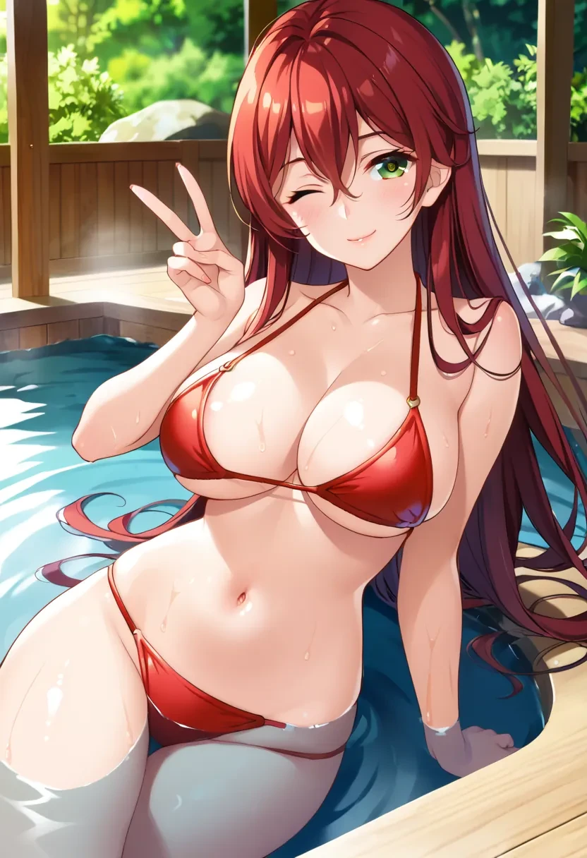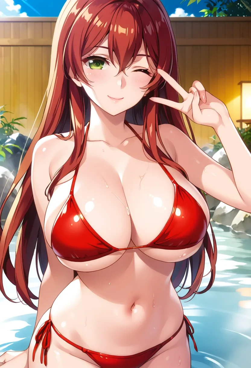 Hiragi Akira, red hair, long hair, brown hair, green eyes, hair between eyes,