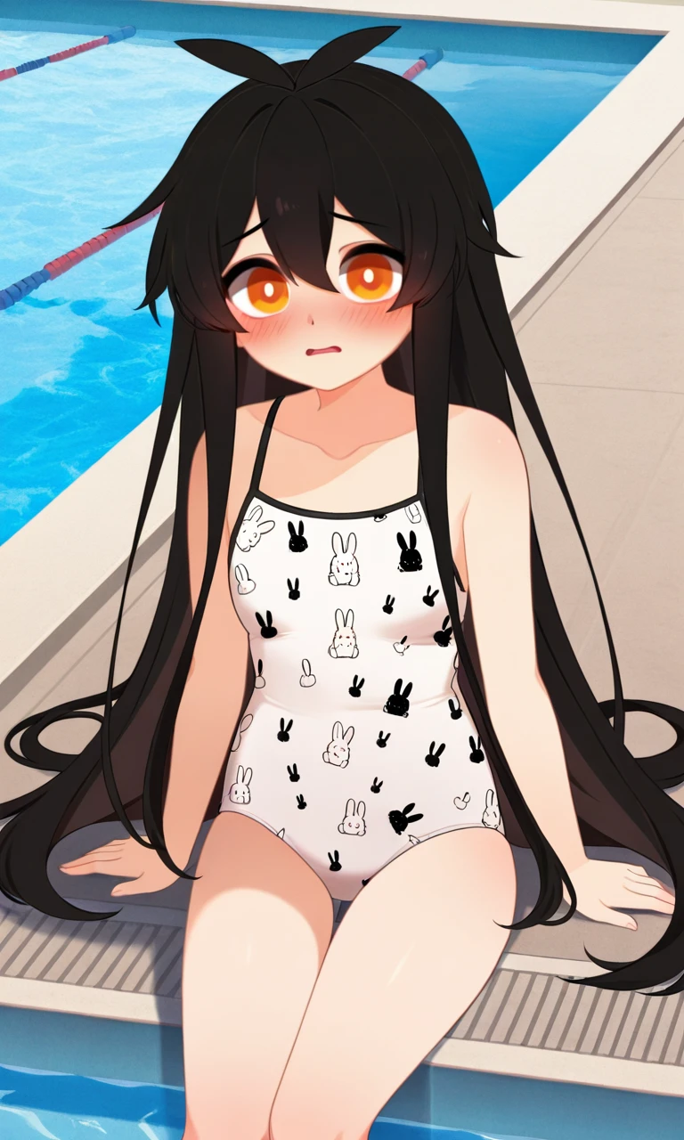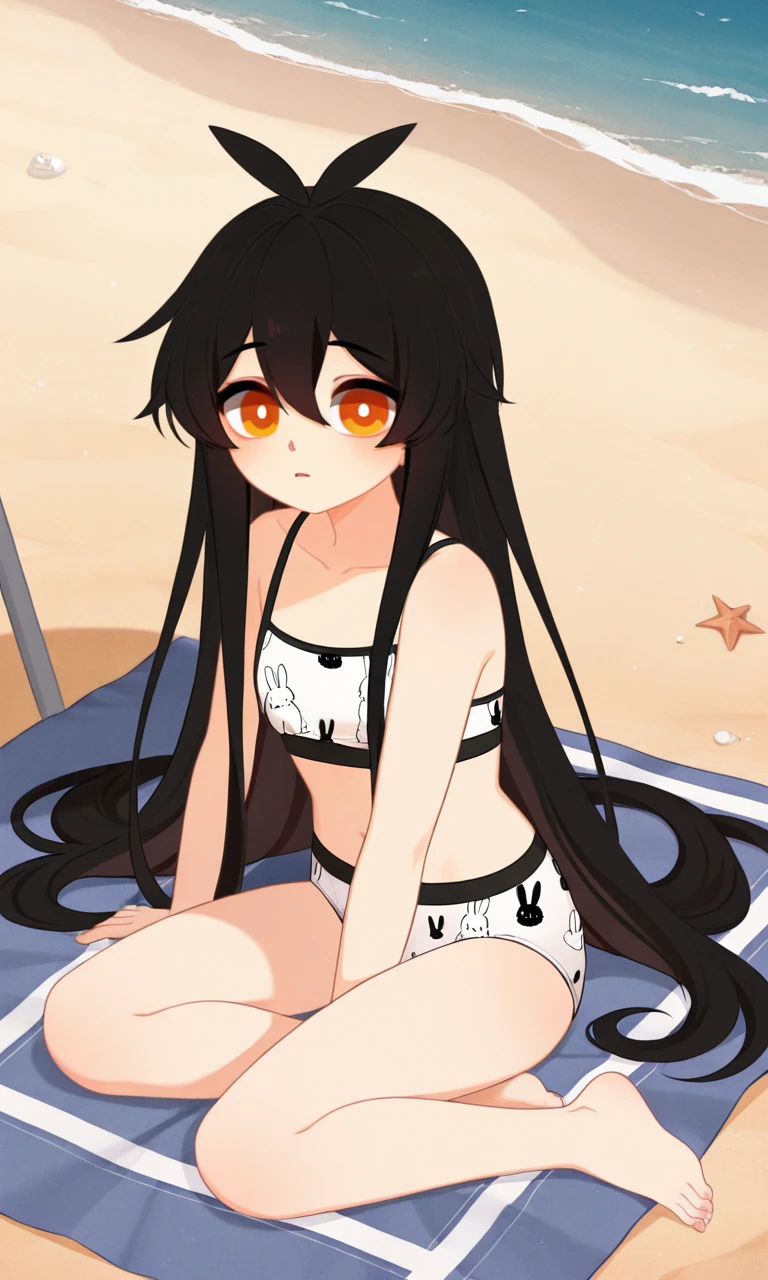 L1nv1, 1girl, solo, long hair, looking at viewer, black hair, hair between eyes, very long hair, orange eyes, antenna hair, bright pupils, white pupils