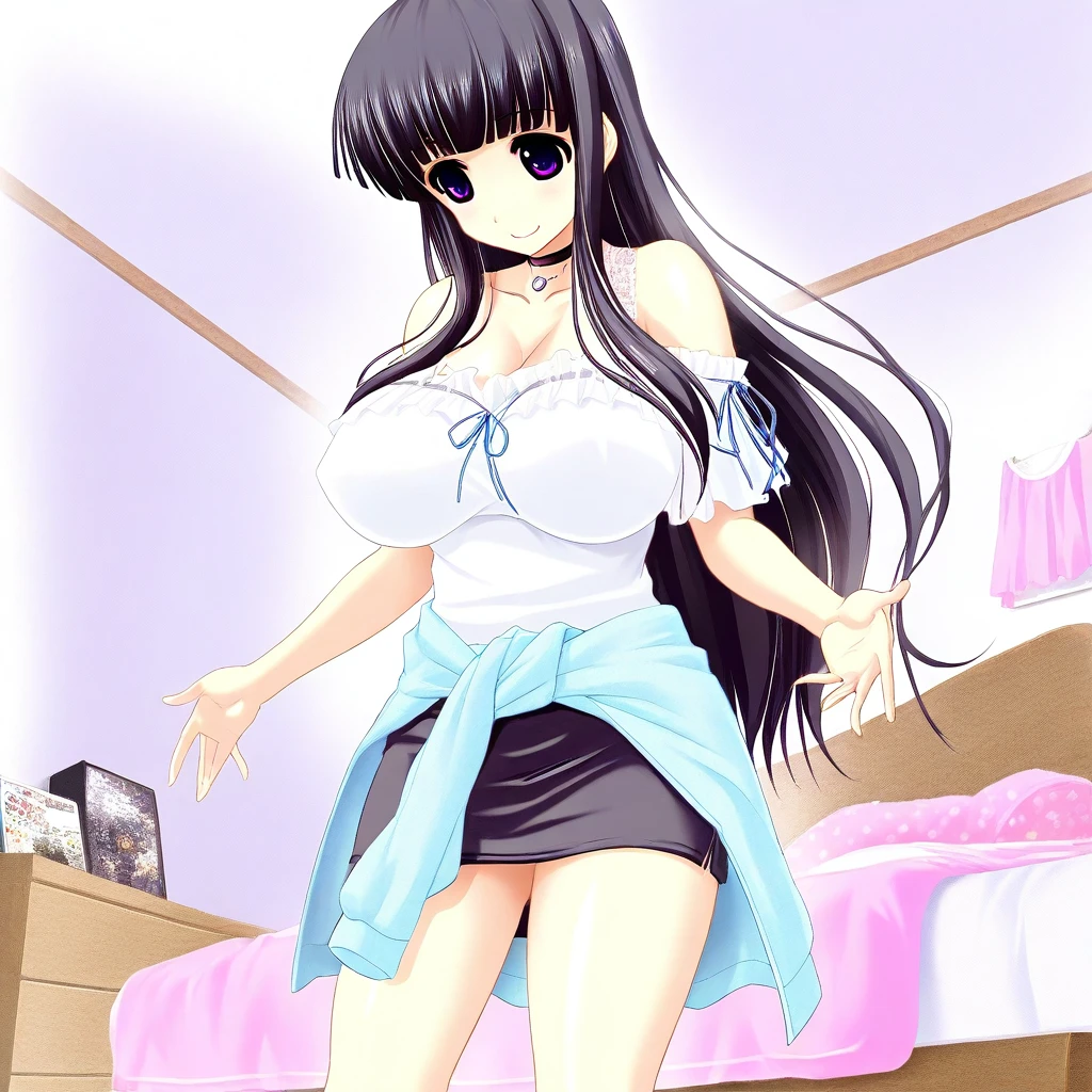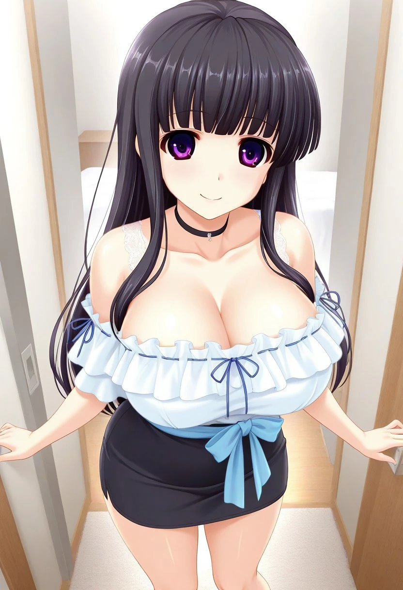 Recommend Prompt:Shizuku Mizunomori, purple eyes, black hair, long hair, blunt bangs, sidelocks,