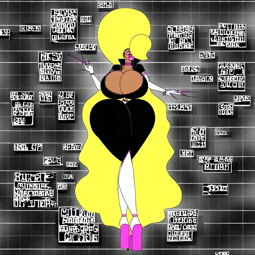 Appearance/Description: She is an ten feet tall woman with very long blond hair that reaches near her feet. Her torso has exaggerated breasts and butt, and she has a beauty mark on the side of her face, and on one side of her breasts. Agent wears a black, white and pink jumpsuit, which reveals her cleavage due to her A-shaped zipper being blocked over the mass of her bust size and tall heels. She has blue eyes and pink lipstick, and wears pink earrings and a pink headband.
