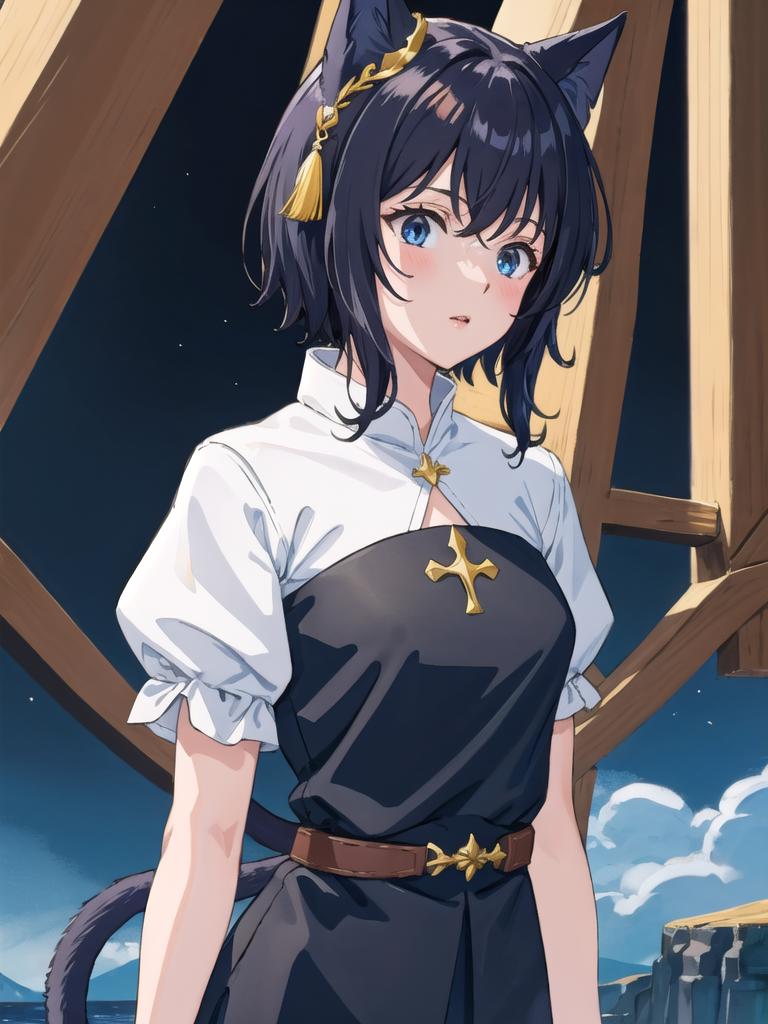 Example prompt: 1girl, fran, cat tail, cat ears, black hair, blue eyes, tail, hair ornament, crossed bangs, animal ear fluff, short hair, [small breasts], <lora:StS-FranRAAS:0.9>
