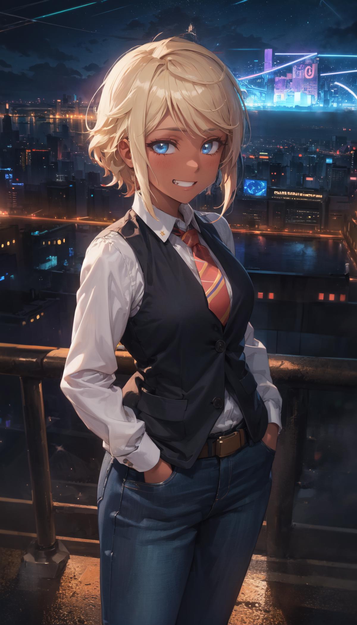 You have to prompt the eyecolor though because in some images she had green and in others she had blue eyes so i was kind of confused. I decided that she has blonde hair even if some pictures showed her with white hair.