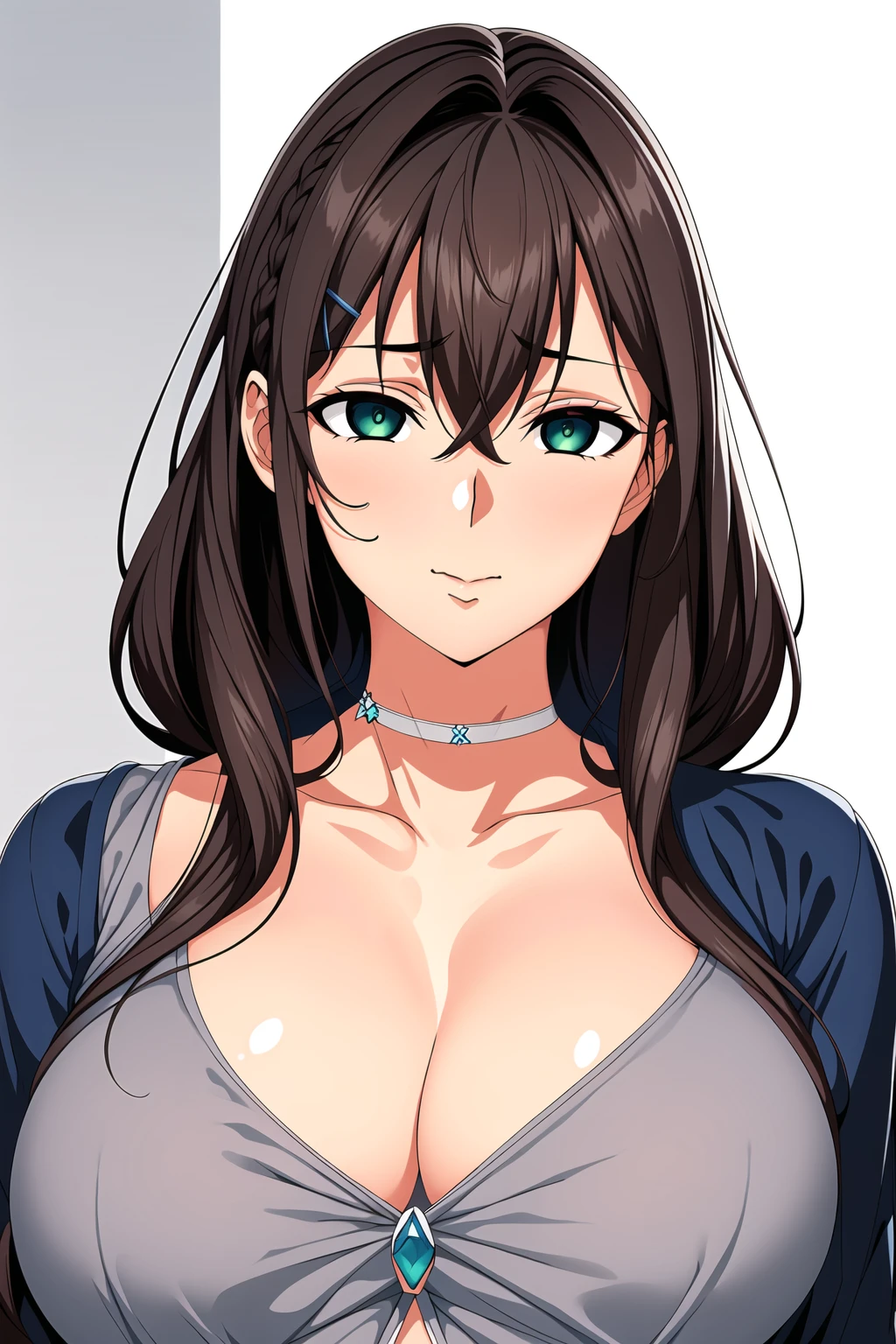 <lora:Kasumi_NTR_Milf-KK77-V2:0.6>,jewelry,gem,hair ornament, hairclip,Black choker,