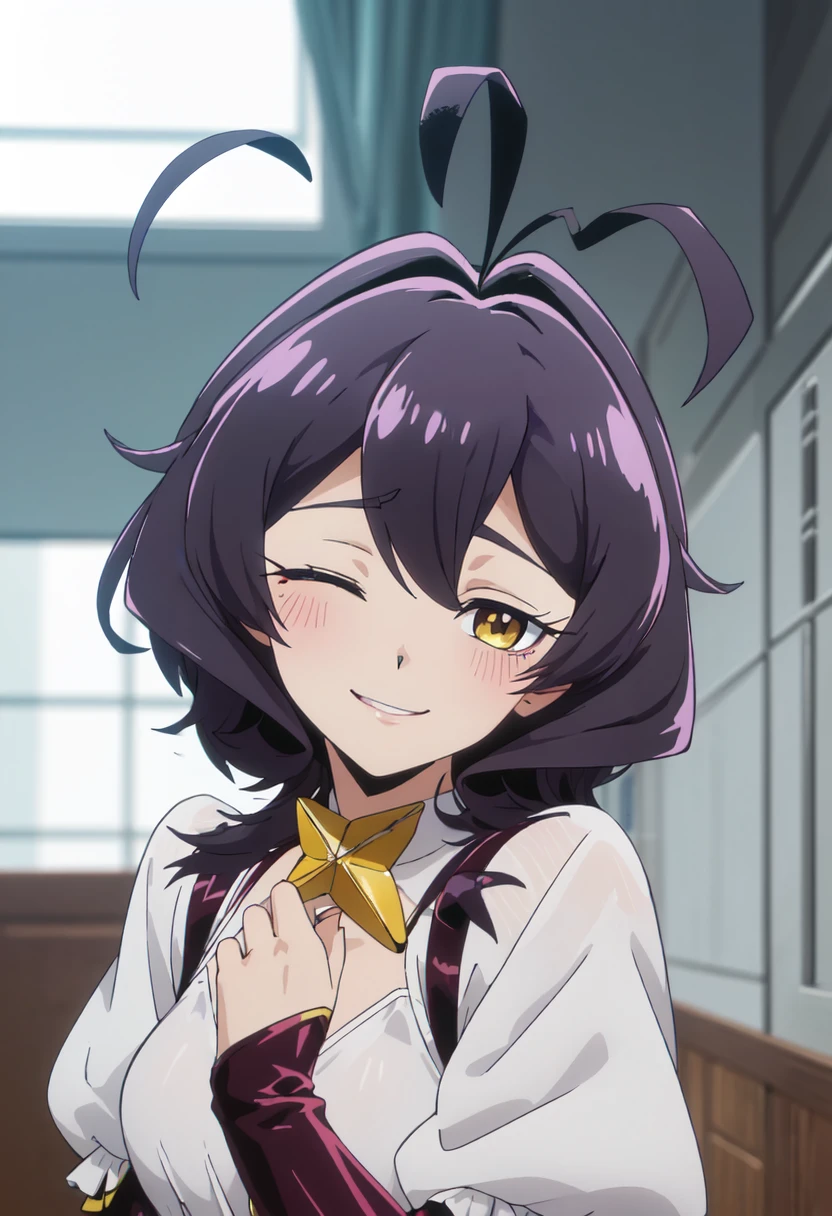 - The pruned character tags are short hair, black hair, ahoge, yellow eyes, horns, purple hair, magical girl, yellow horns, breasts, wings, symbol-shaped pupils. You can add them into prompts when core features (e.g. hair color) of character is not so stable.