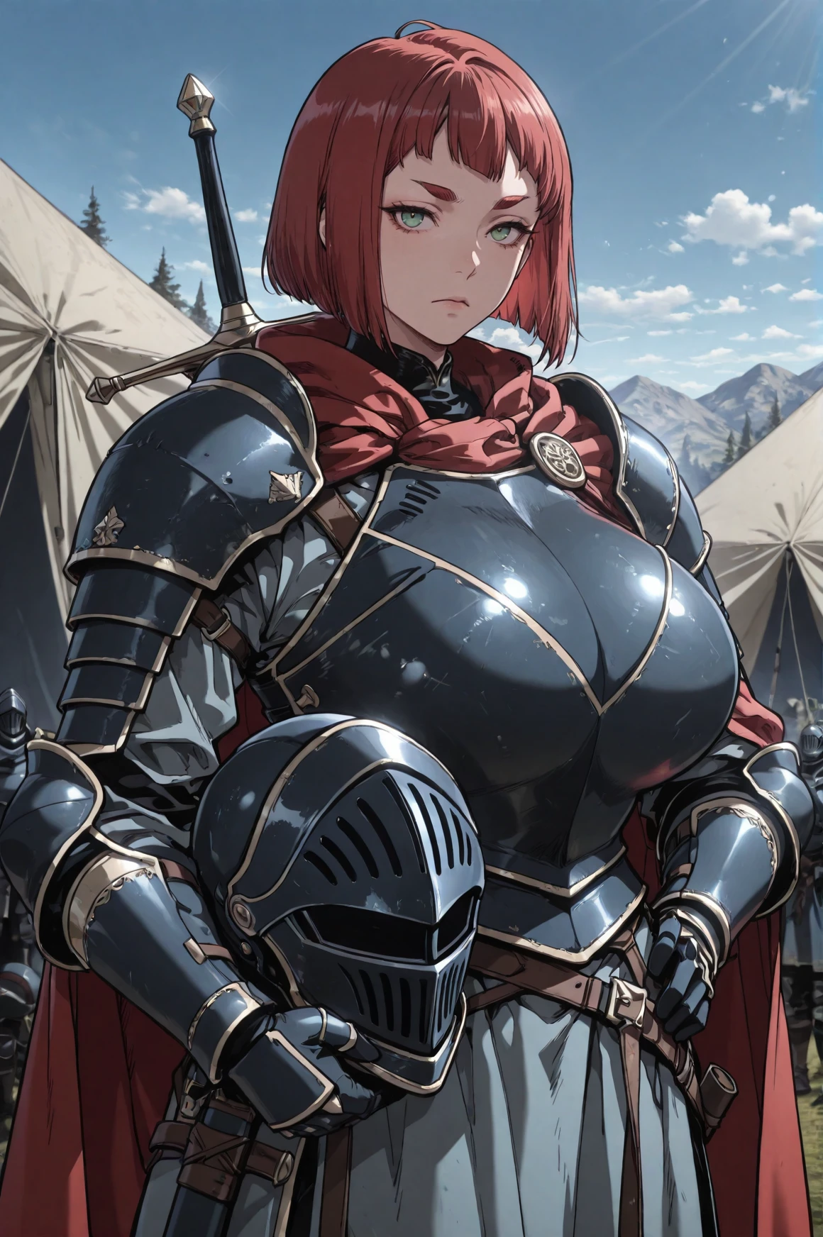 aisia_erk_thd,red hair,bob cut,green eyes,thick eyebrows,