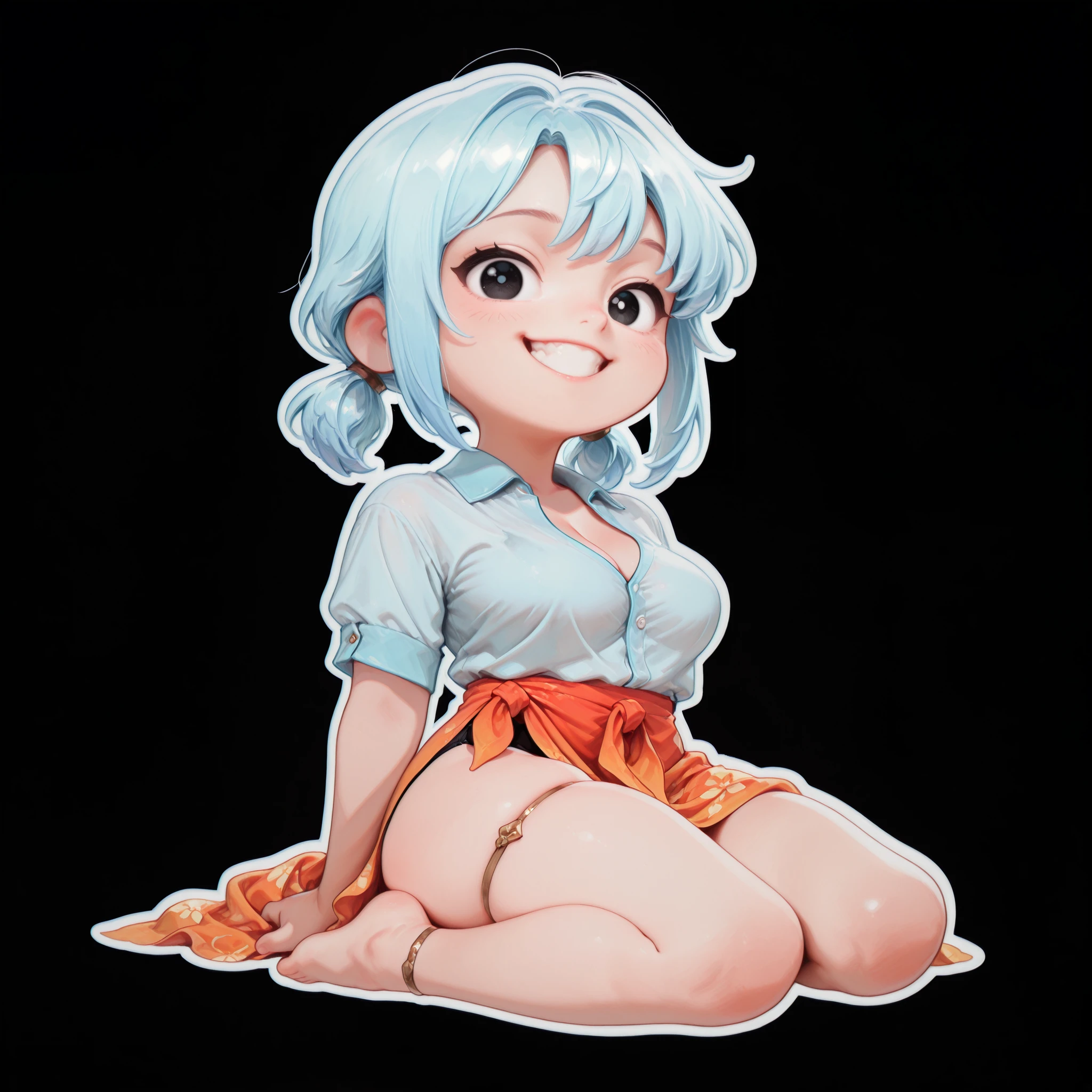 NOTE: This model was intended to render characters with a "chibi" aesthetic, a thick white outline around the character and a solid black background. The reasoning for using a white outline and a solid black background is because black and white are contrasting colors and doing so makes it easier to remove the background from the character to create a transparent sticker. This makes is possible to photoshop them for printing, or for use in servers (like Discord) that can make use of transparent stickers.