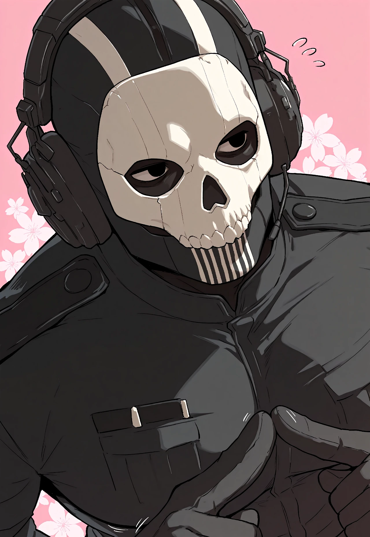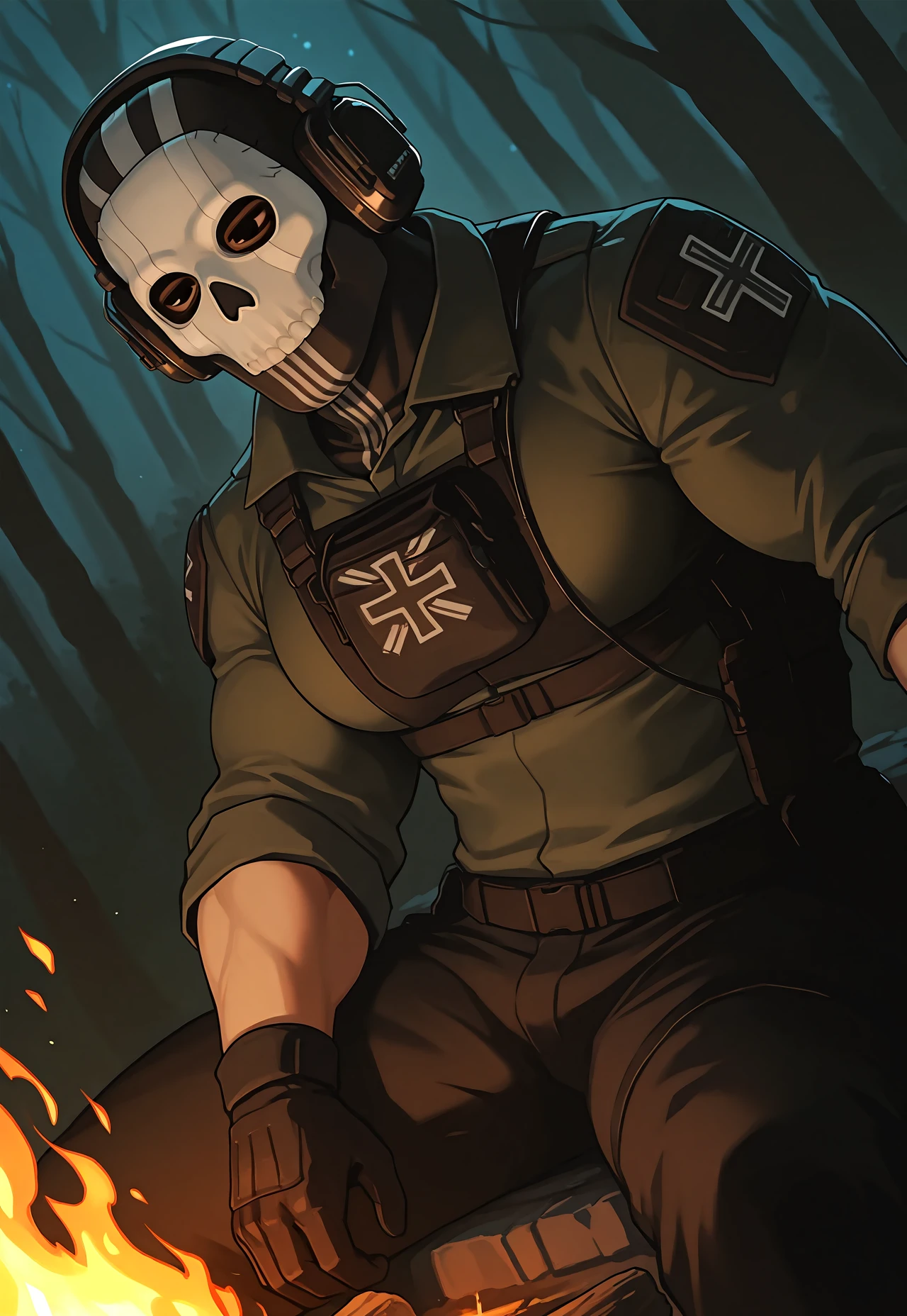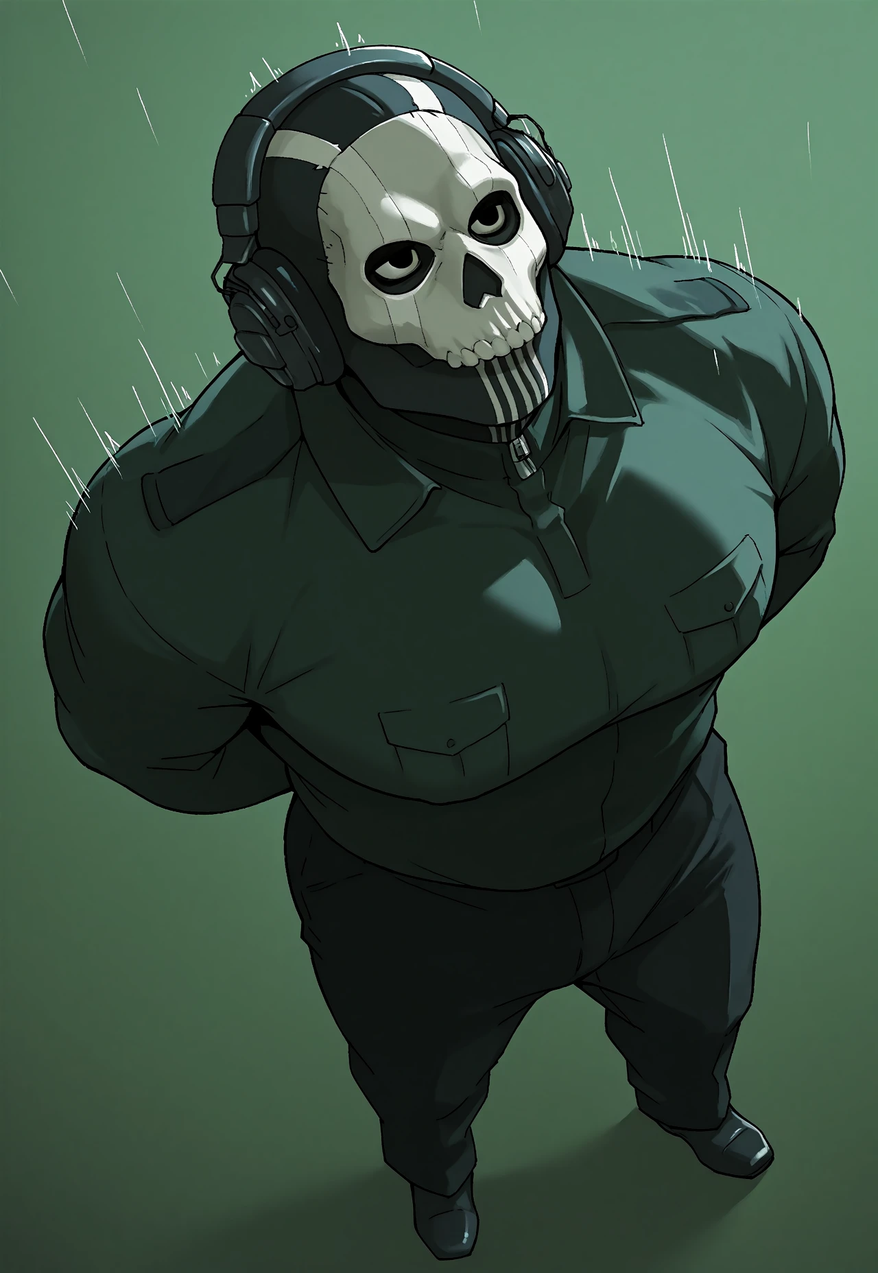 Simon Riley, Ghost, military mask, black eye paint, black eyes, (no mouth), , (black eyes:1.4, big pupil:1.2), Active military headphonesClothes:
