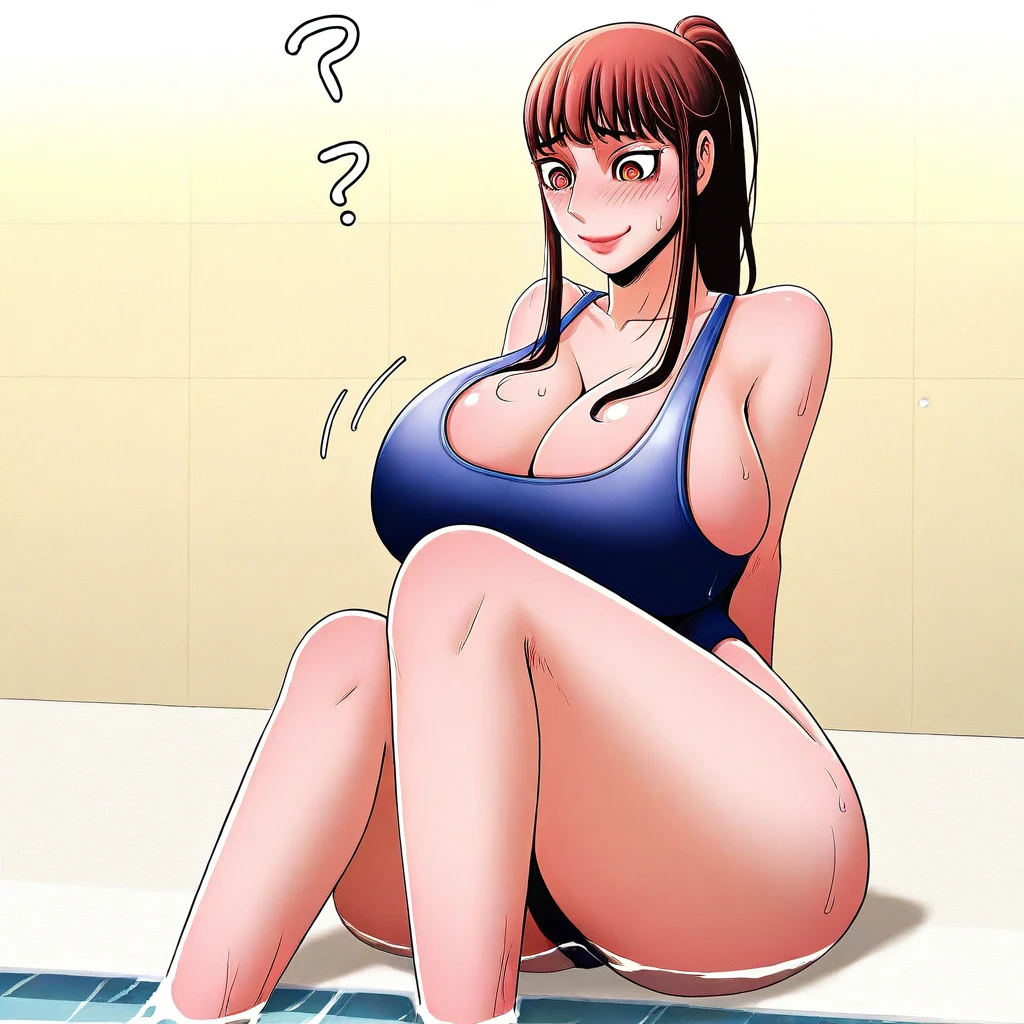 2. ((sexy blue competition swimsuit, obscene cleavage, huge cleavage, ))
