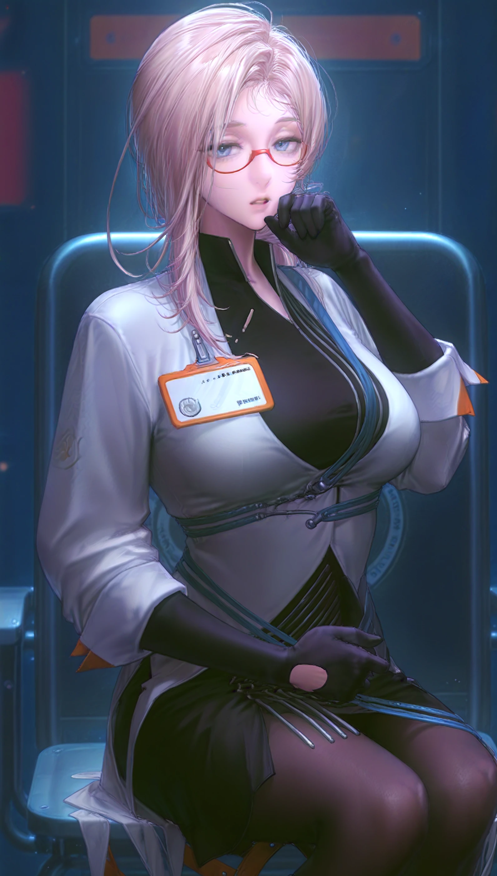 Optionnal Words: black skirt, gloves, pantyhose, glasses, black gloves, black boots, id card