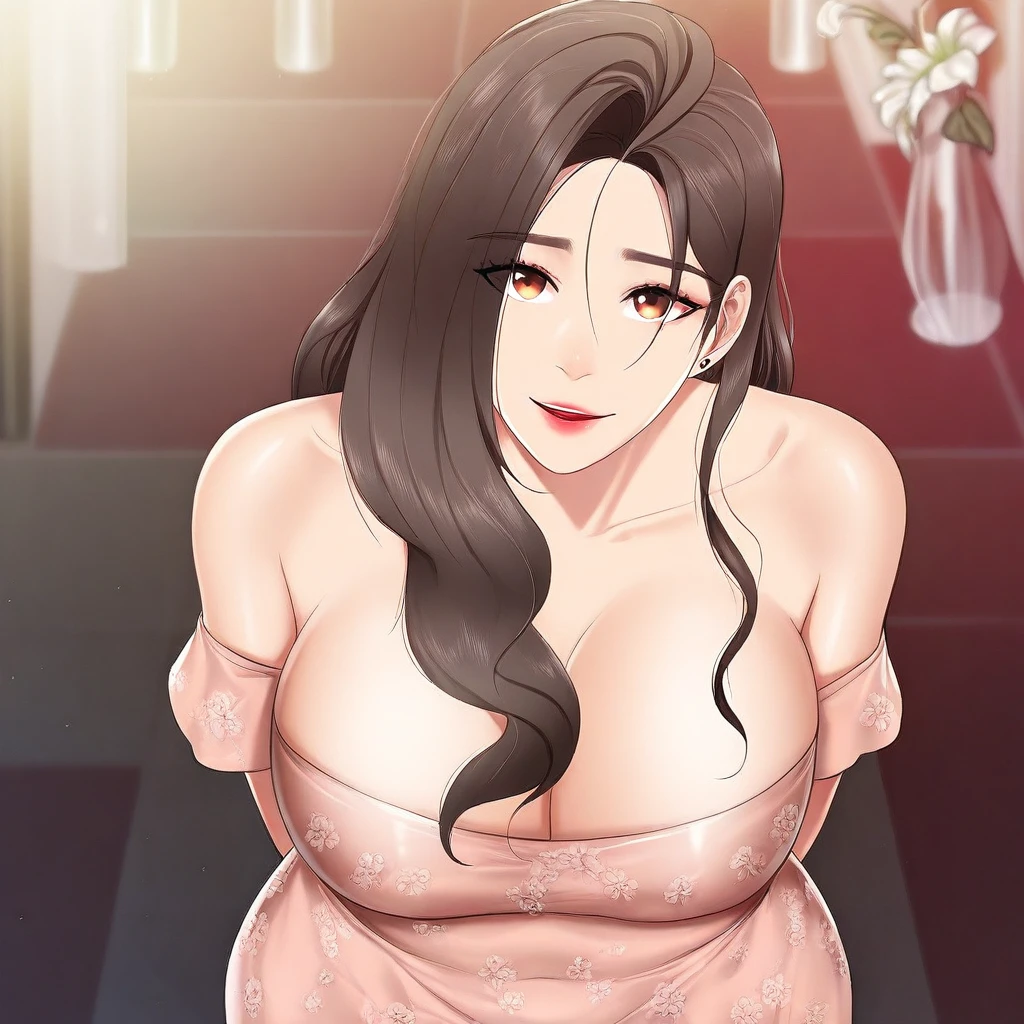(( <lora:sung_hyo-jung:1> , sung_hyo-jung, piercing amber eyes, clear eyes, bright pupils, beautiful eyes, beautiful brown hair, beautiful long hair, huge and shaggy breast, thin waist, wide hips, beautiful skin, beauty, extraordinary beautiful woman, attractive woman, super sexy woman, lustful body, sexy woman with seductive obscene body, sensual body, voluptuous body, ))