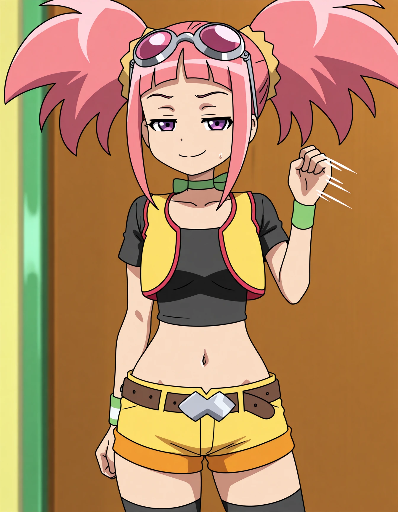 Trigger Words: handj0b gesture, single hand up, looking at viewer,