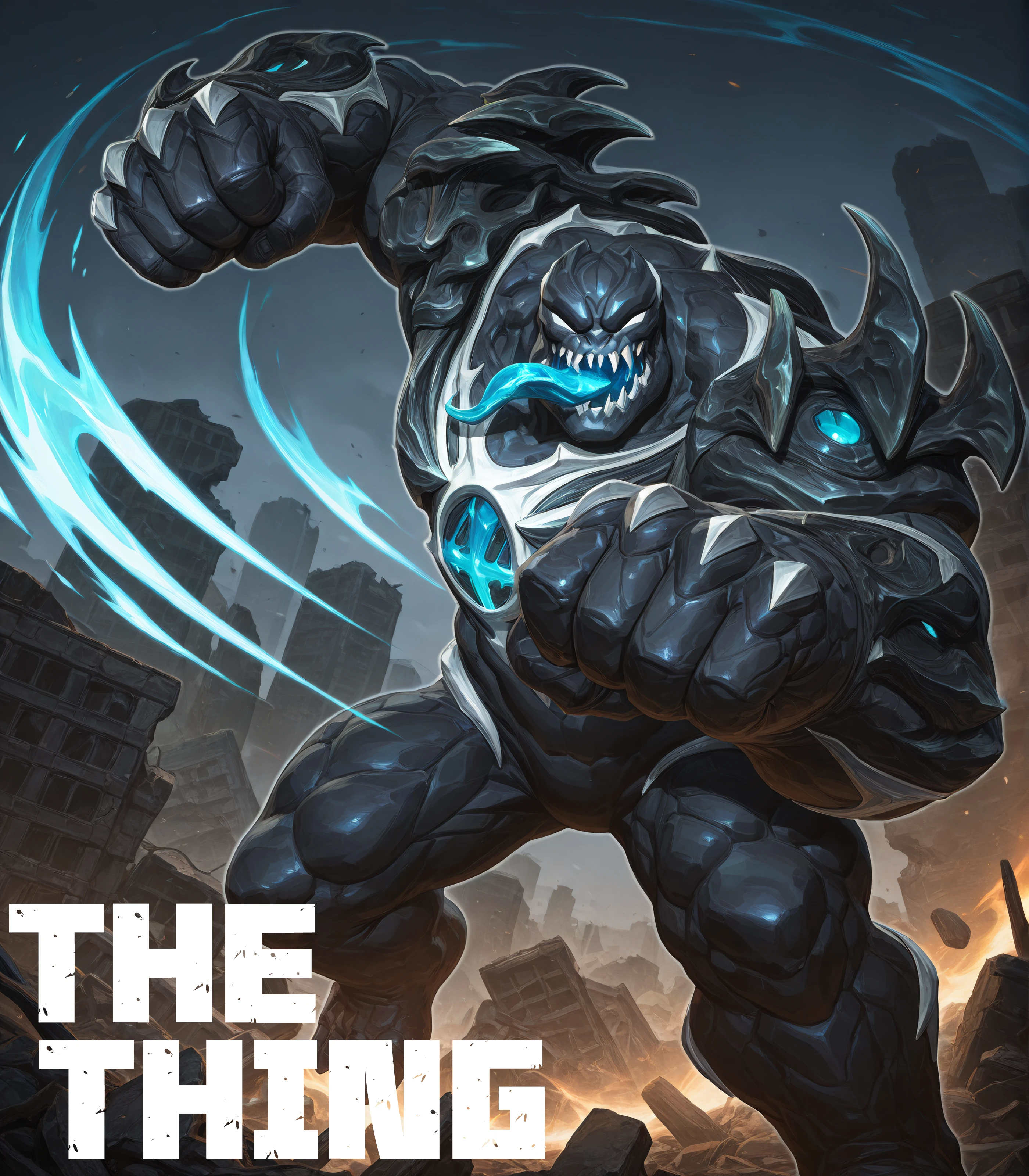 thething(symbiote),symbiote body, andblue tongueto perfectly generate The Thing's symbiote form.Base Appearance: To generate The Thing's classic original look, use the prompts