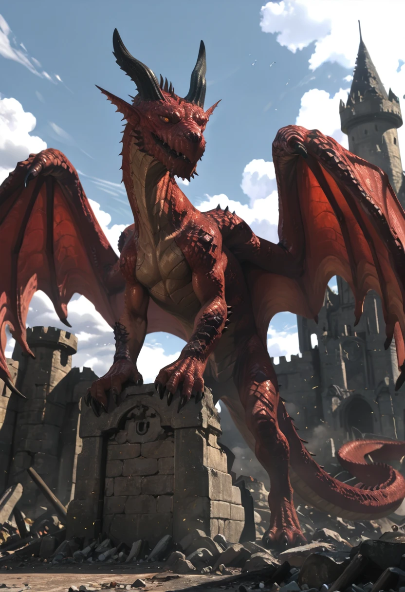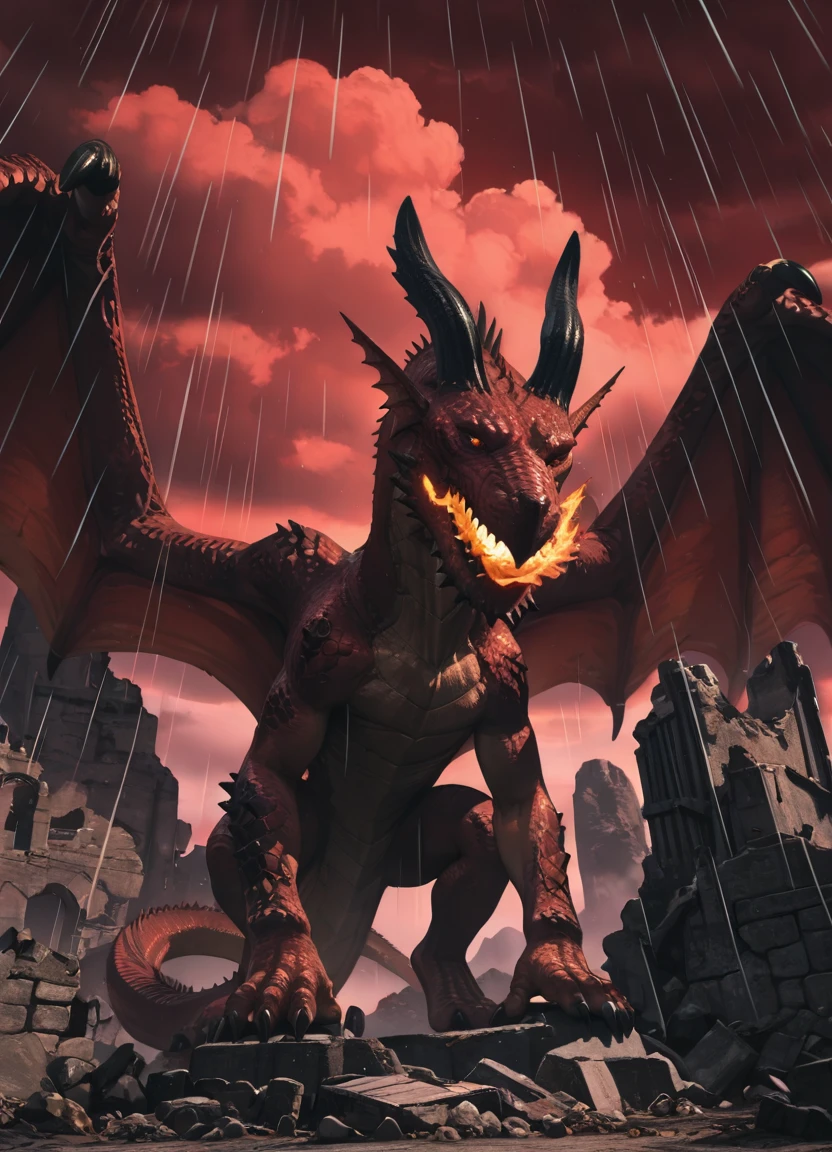 Trigger words are: Grigori,rough crimson-red scales,glowing orange-red eyes,two horns,spiked jaw,huge dragon,muscular,