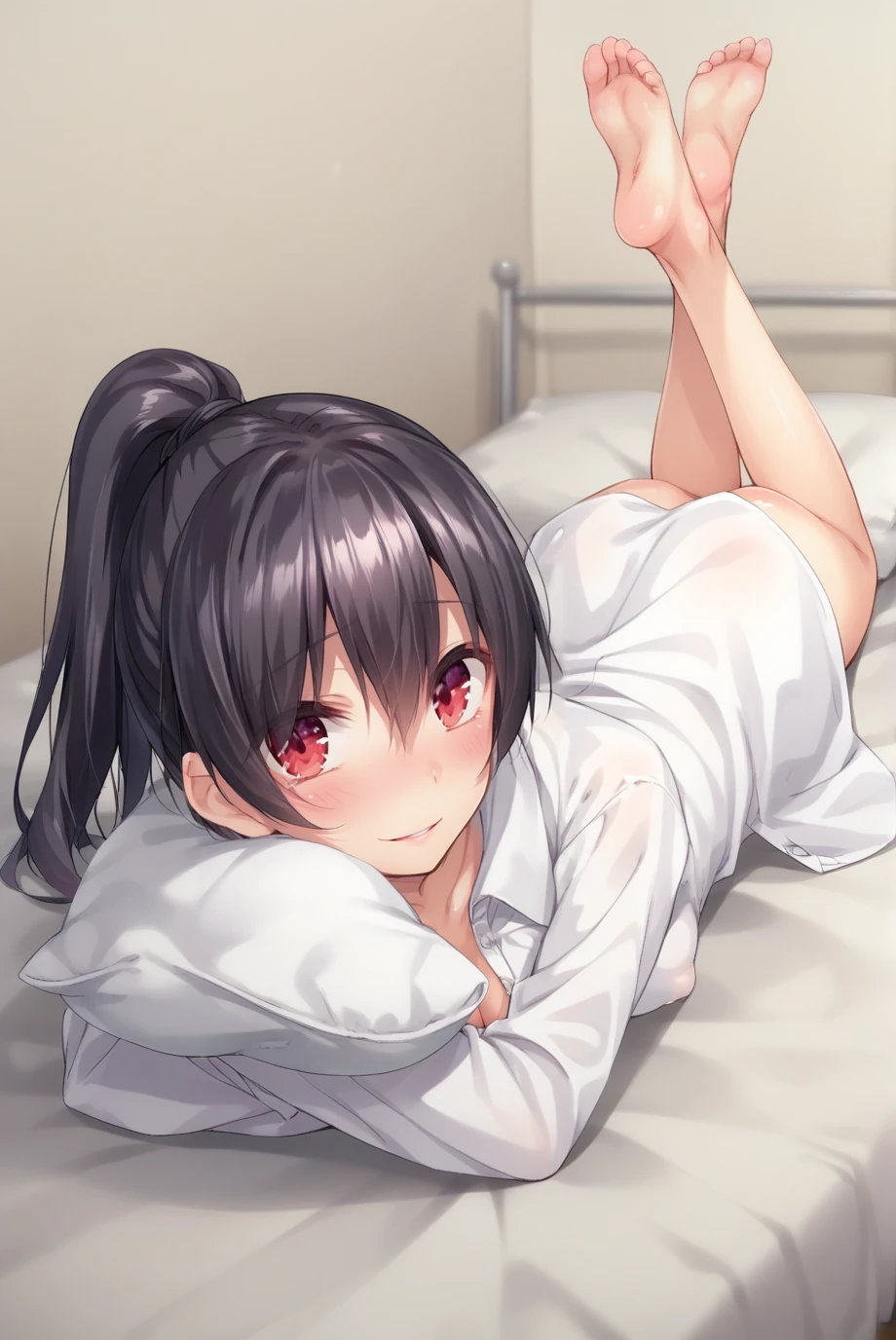 <lora:1roomXL-v1-06:0.7>, Chopio1room, black hair, shiny hair, hair between eyes, red eyes, looking at viewer,