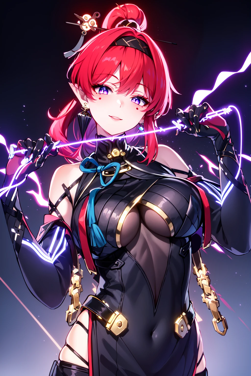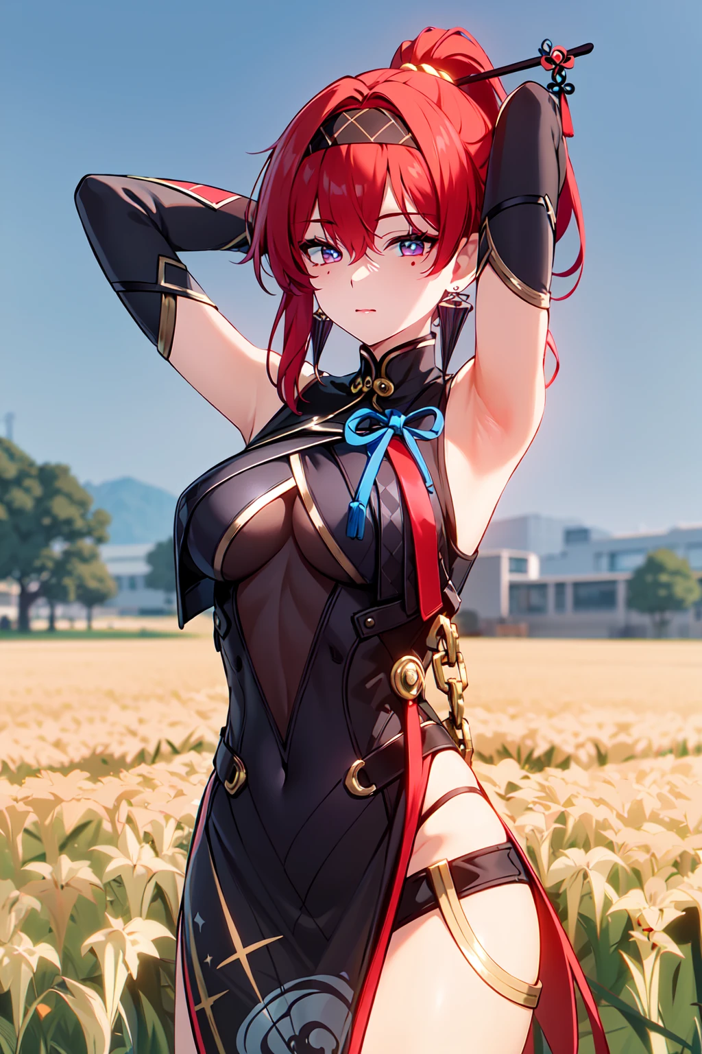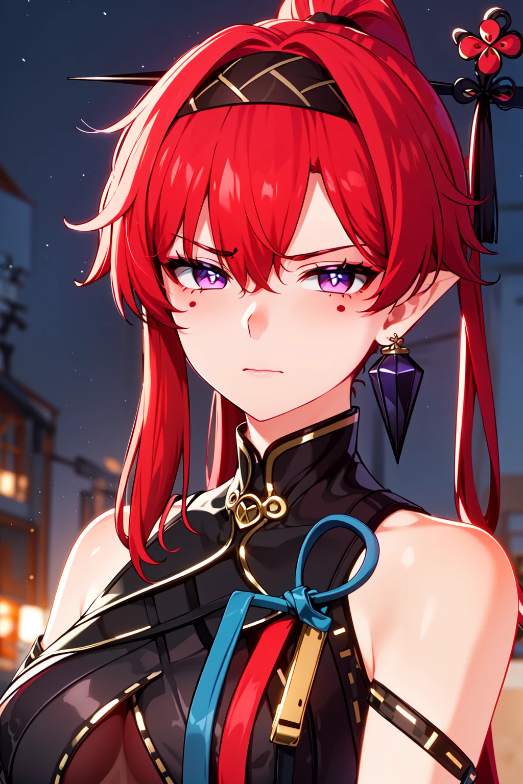 To prompt the full character, enter "<lora:Yinlinb1:strength>Yinlin, dot eyeliner, black dress, hairband, detached elbow gloves, hair stick ornament, earring, gold chain,"