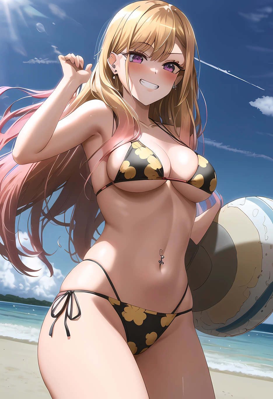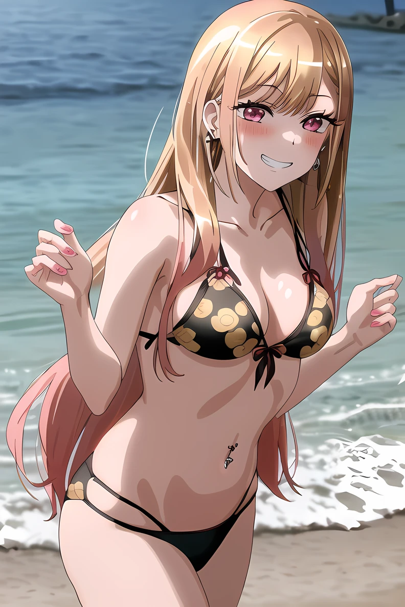 It's mostly trained on both her school uniform and iconic bikini, so you can add tags to steer output towards either, though if you don't do that you'll sometimes get a mix of the two. My initial attempts had the multiple ear piercings as a focus but this really upset SD generating her ear properly, so you'll have to add prompts for earrings/piercings to get these consistently now. Same goes for the fake/long nails if you want those.