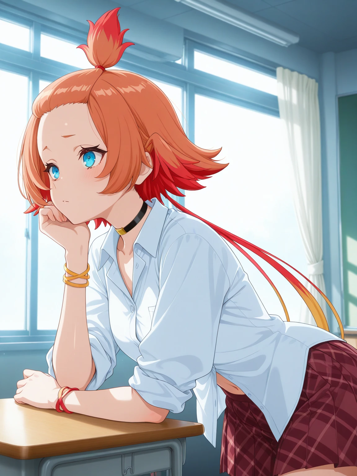 Character: (TobariHaneda, blue eyes, multicolored hair, orange red hair, bangs pinned back)