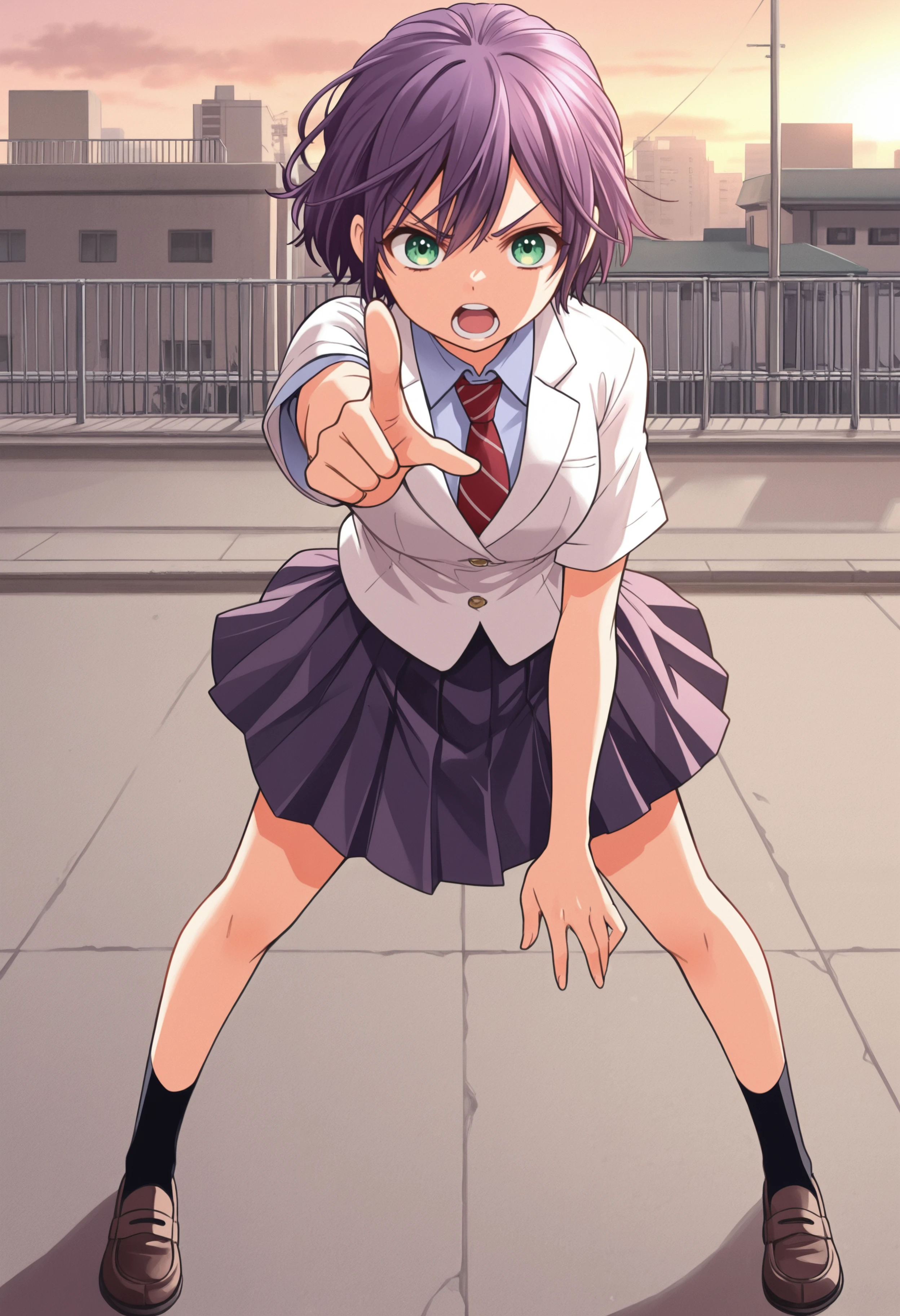 kakkoumanga_hiro, green eyes, purple hair, short hair,