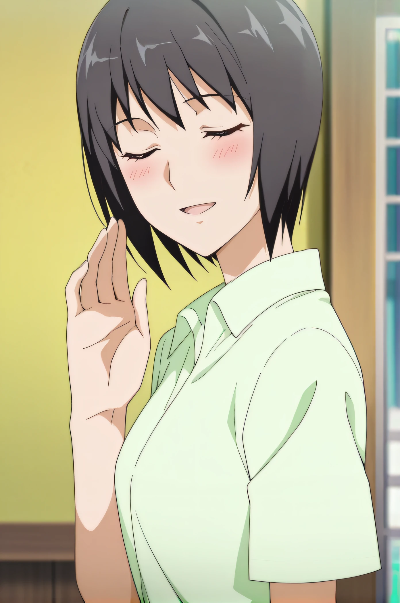 chihaya, black hair, short hair, black eyes