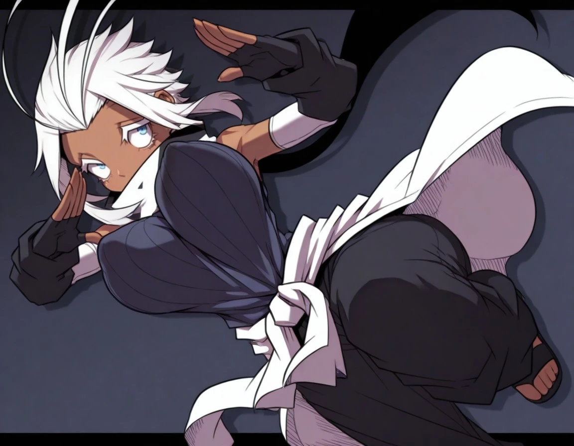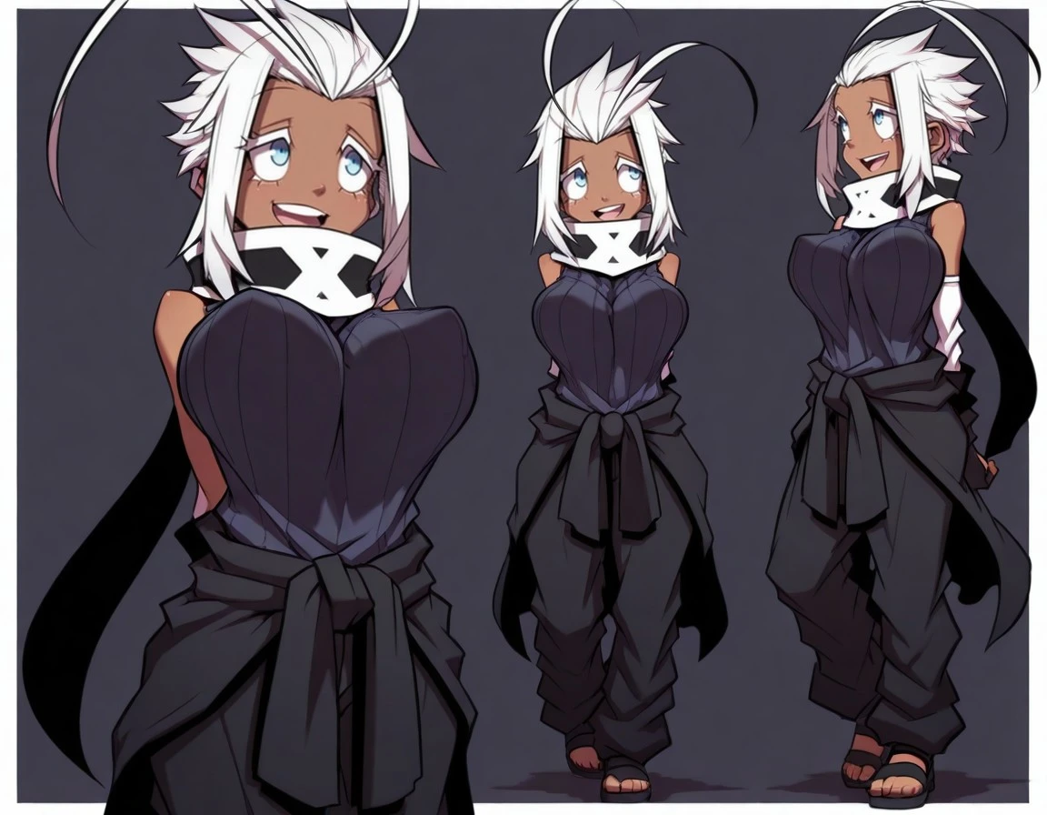 blue eyes white eyelashes big sanpaku eyes sidelocks antenna hair short hair white hair dark skin