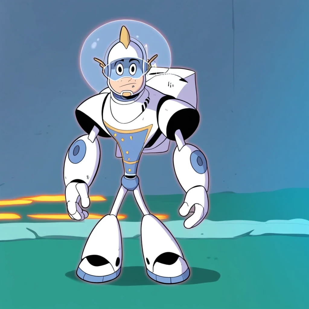 Crash nebula, solo, male focus, 1boy, black eyes, helmet, android, robot, style parody,