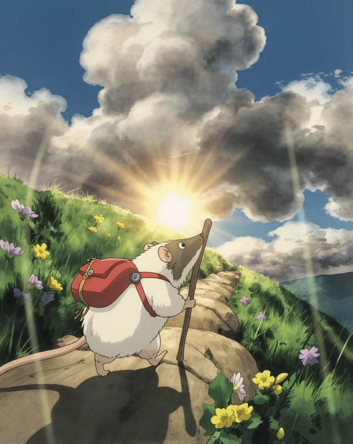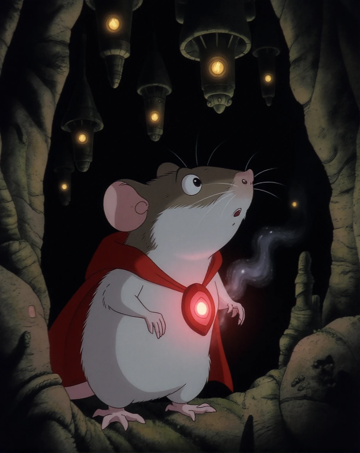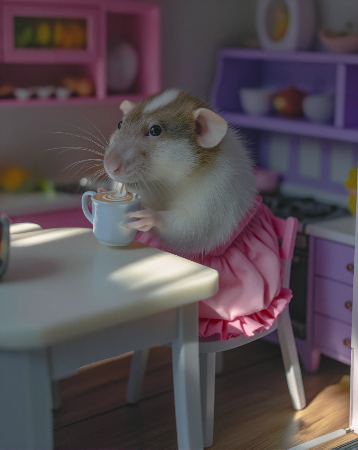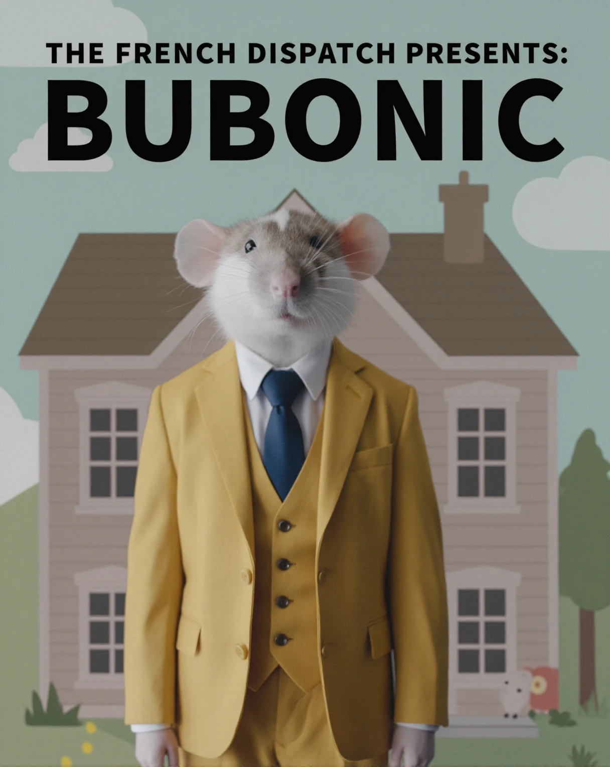 A small white-furred bubrat rat with a brownish-gray face and ears