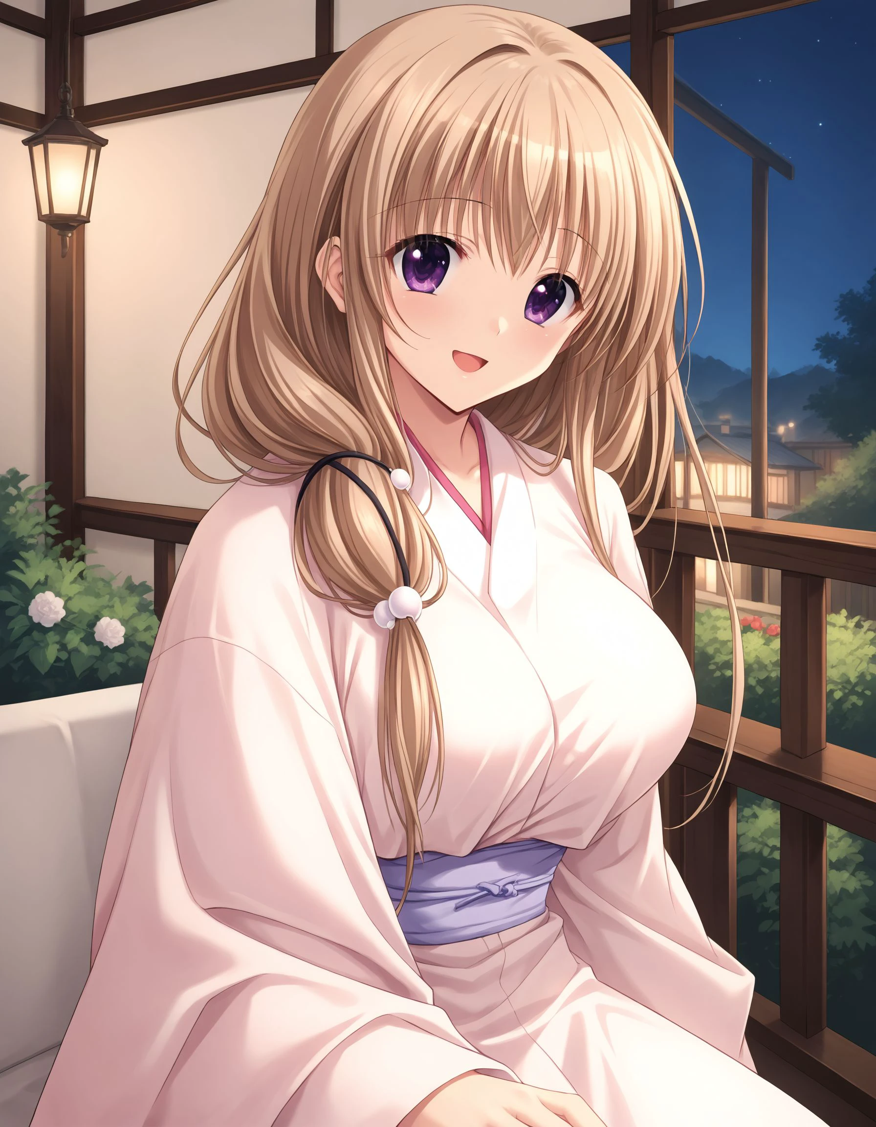aya, light brown hair, long hair, purple eyes, large breasts,