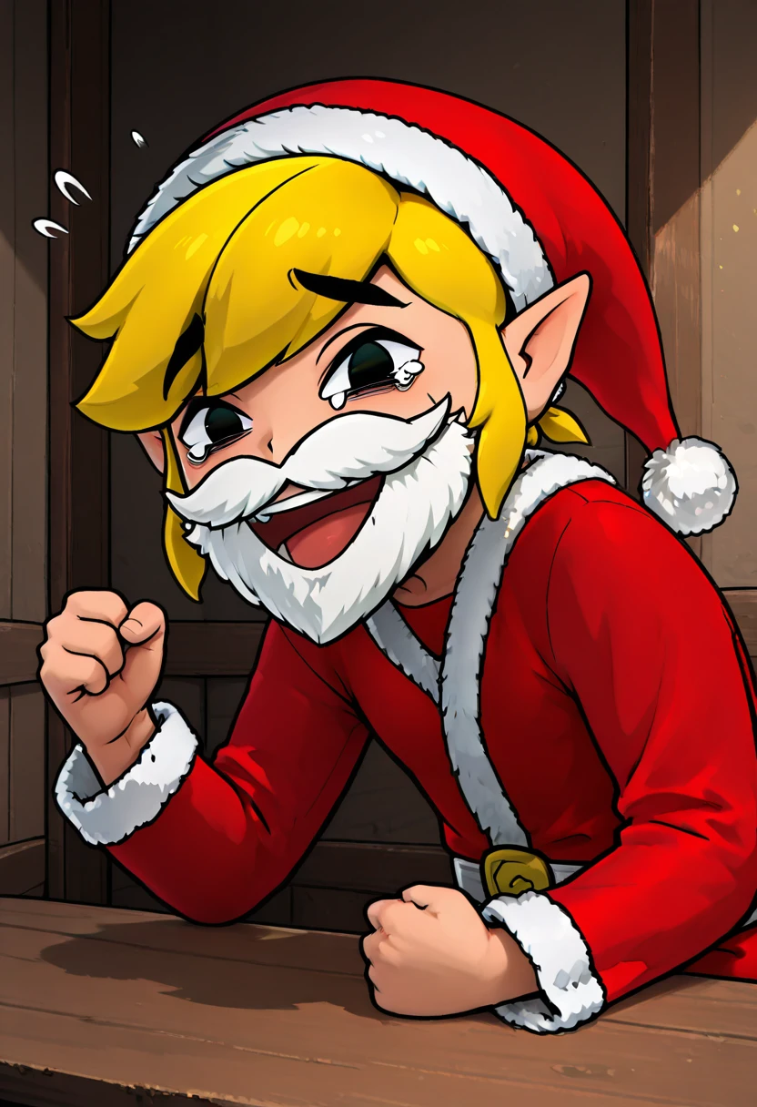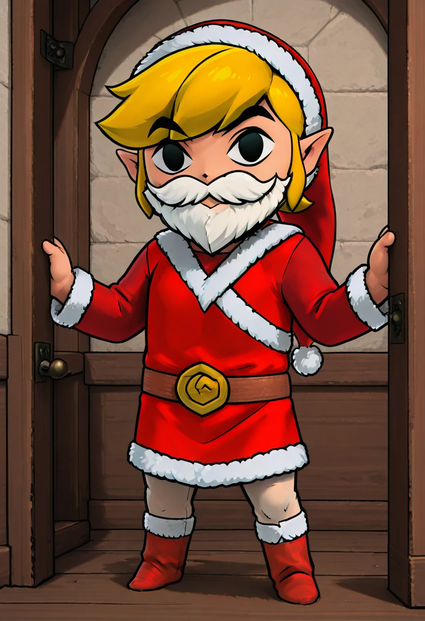 zzSLink, blonde hair, pointy ears, santa hat, santa costume, tunic,