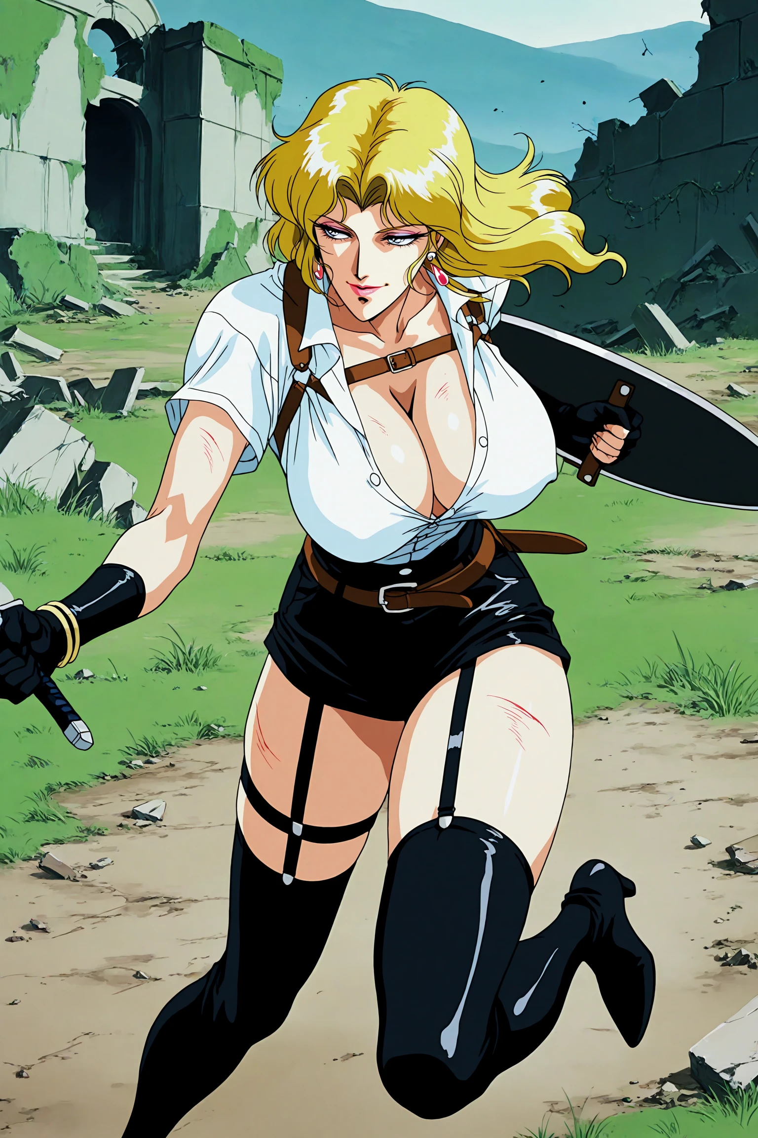 In the classic Madhouse Studios style (with Yutaka Minowa character designs) from the 1993 film Ninja Scroll.
