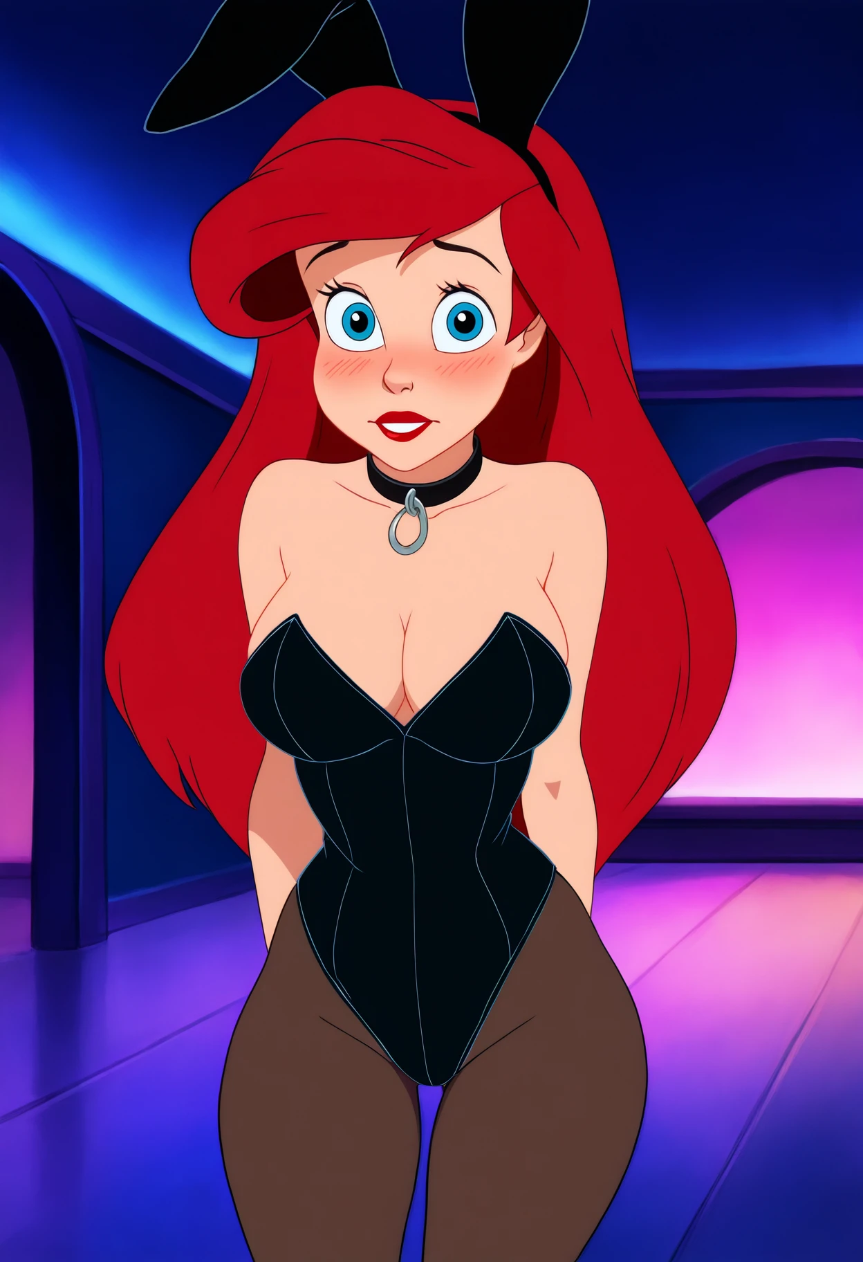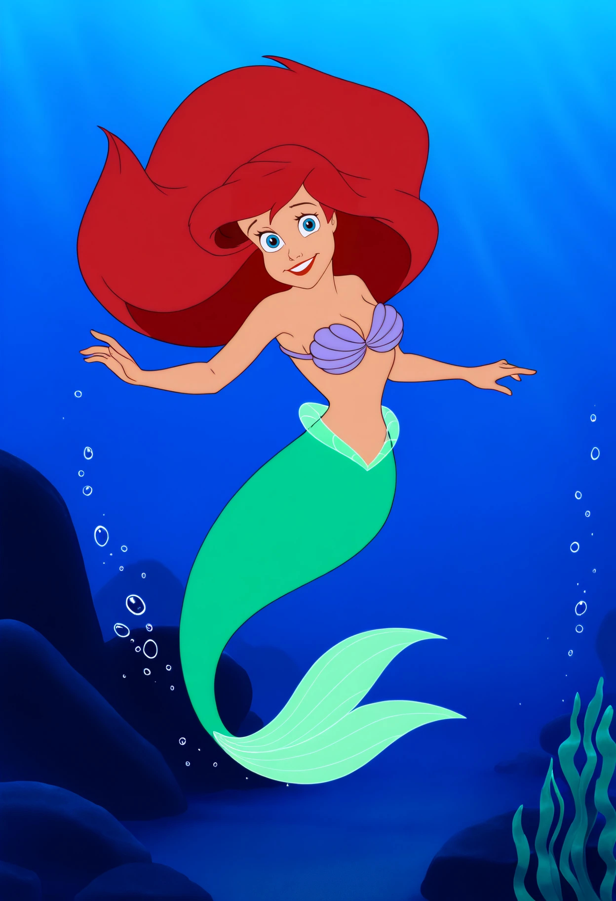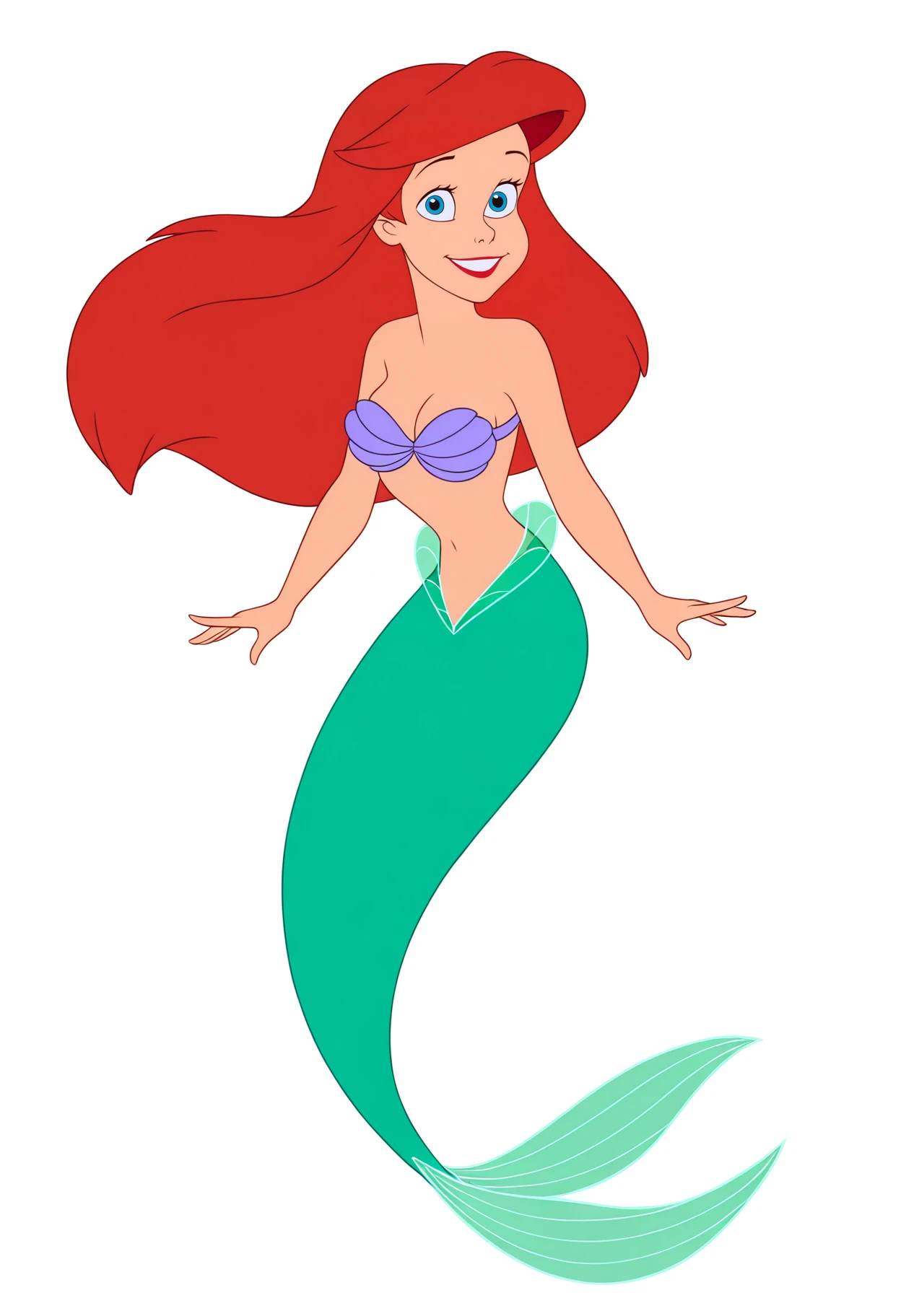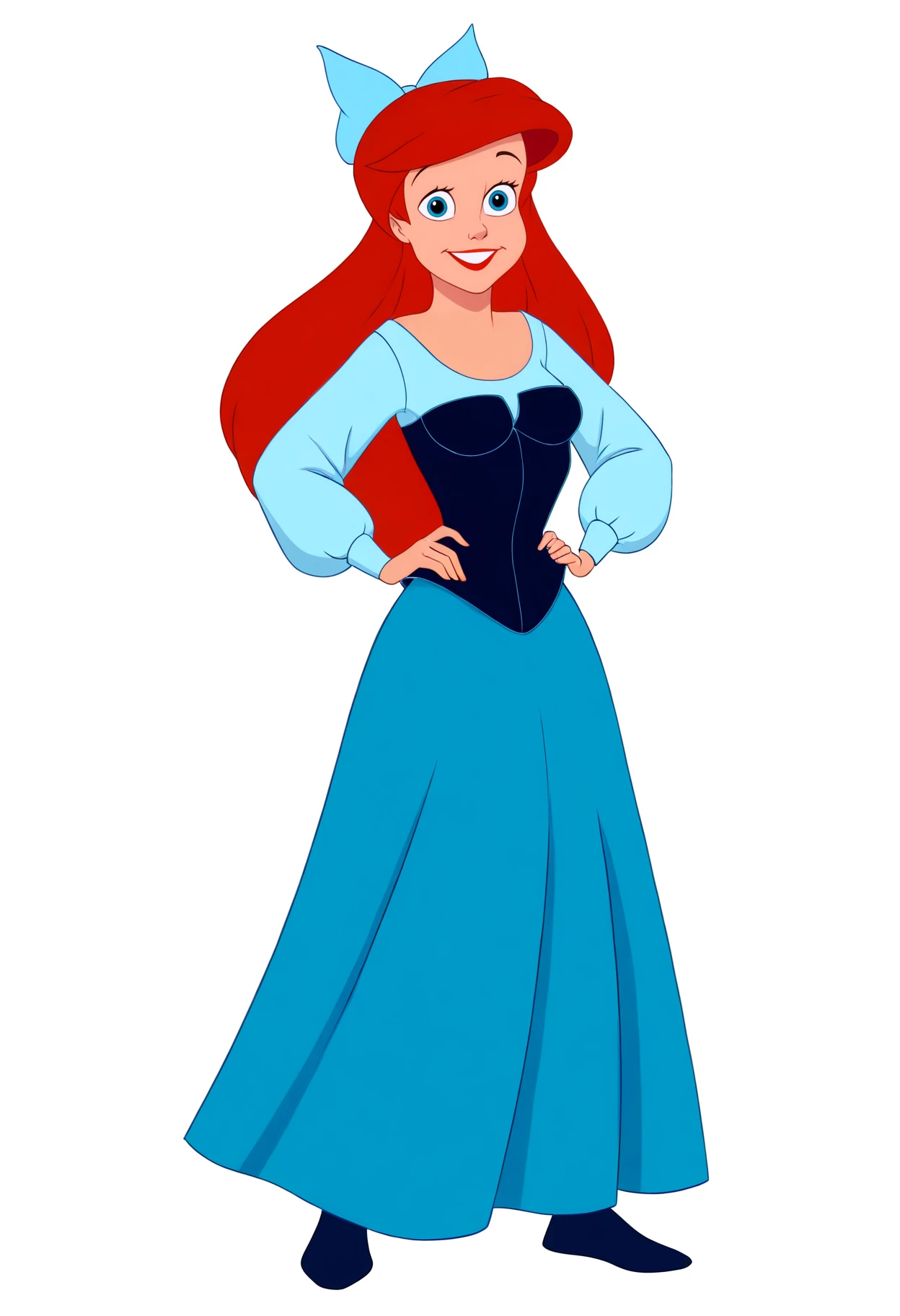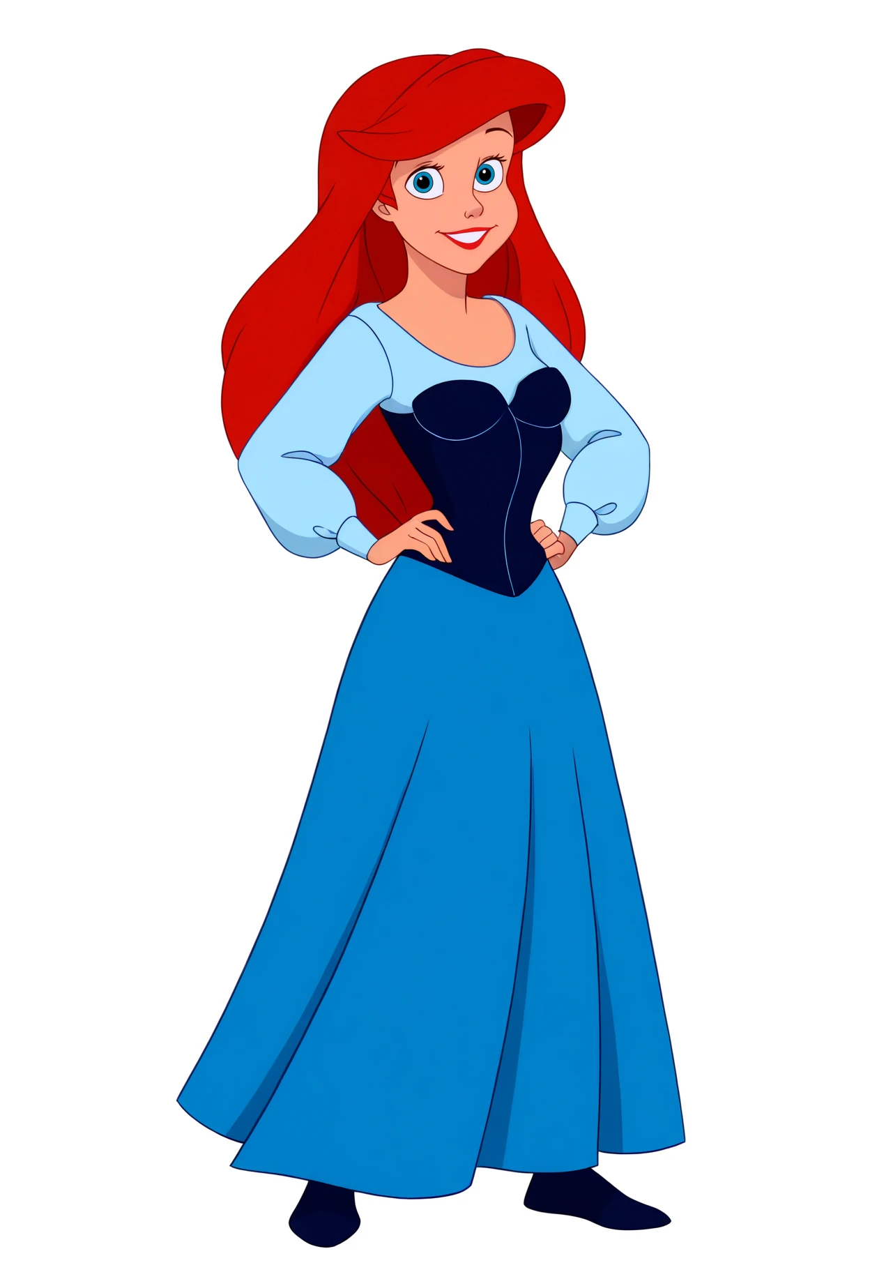 Basic prompts : 1girl, ariel, long hair, blue eyes, red hair, red lips