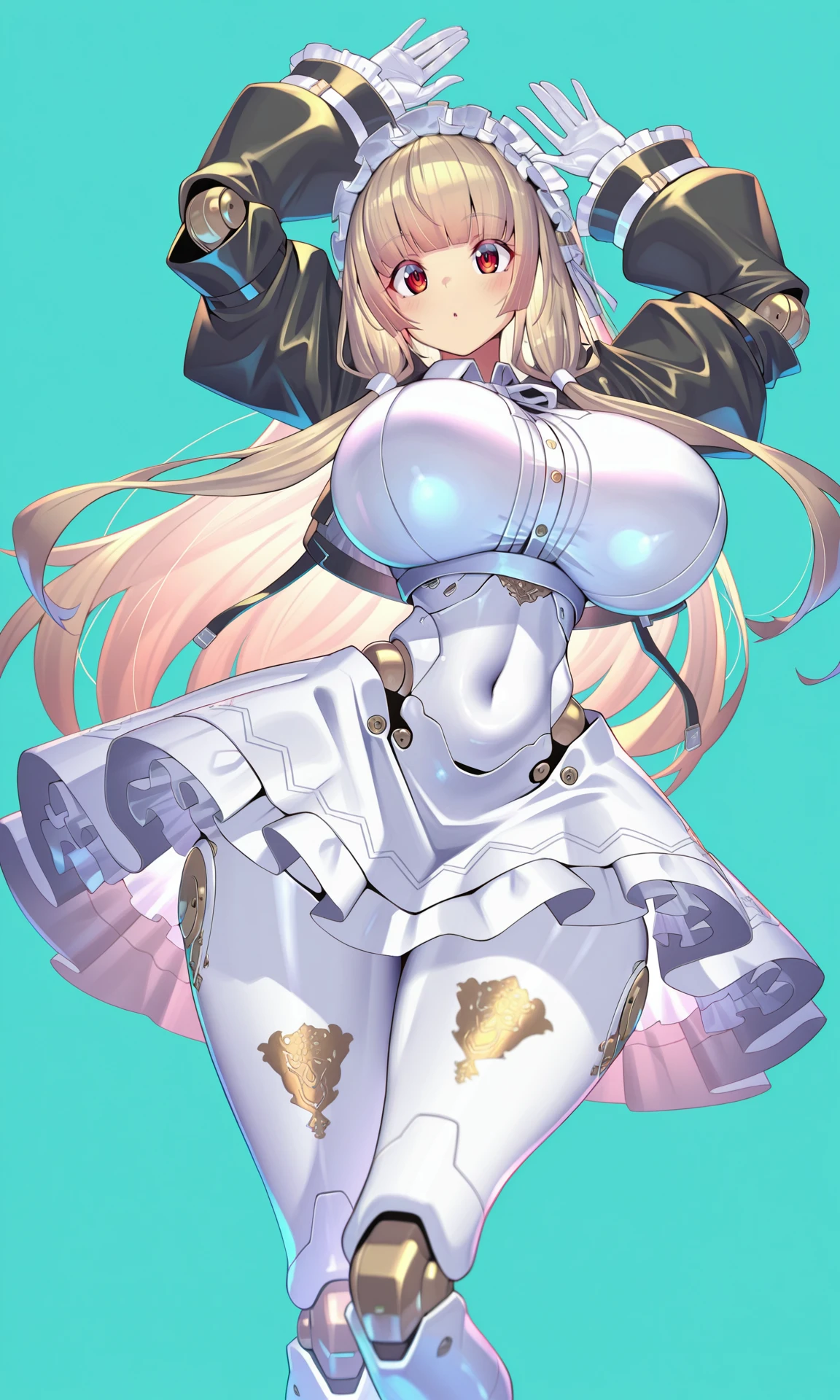 long hair,light_brown_hair,sidelocks, low-tied_sidelocks , bangs, red eyes,maid headdress,