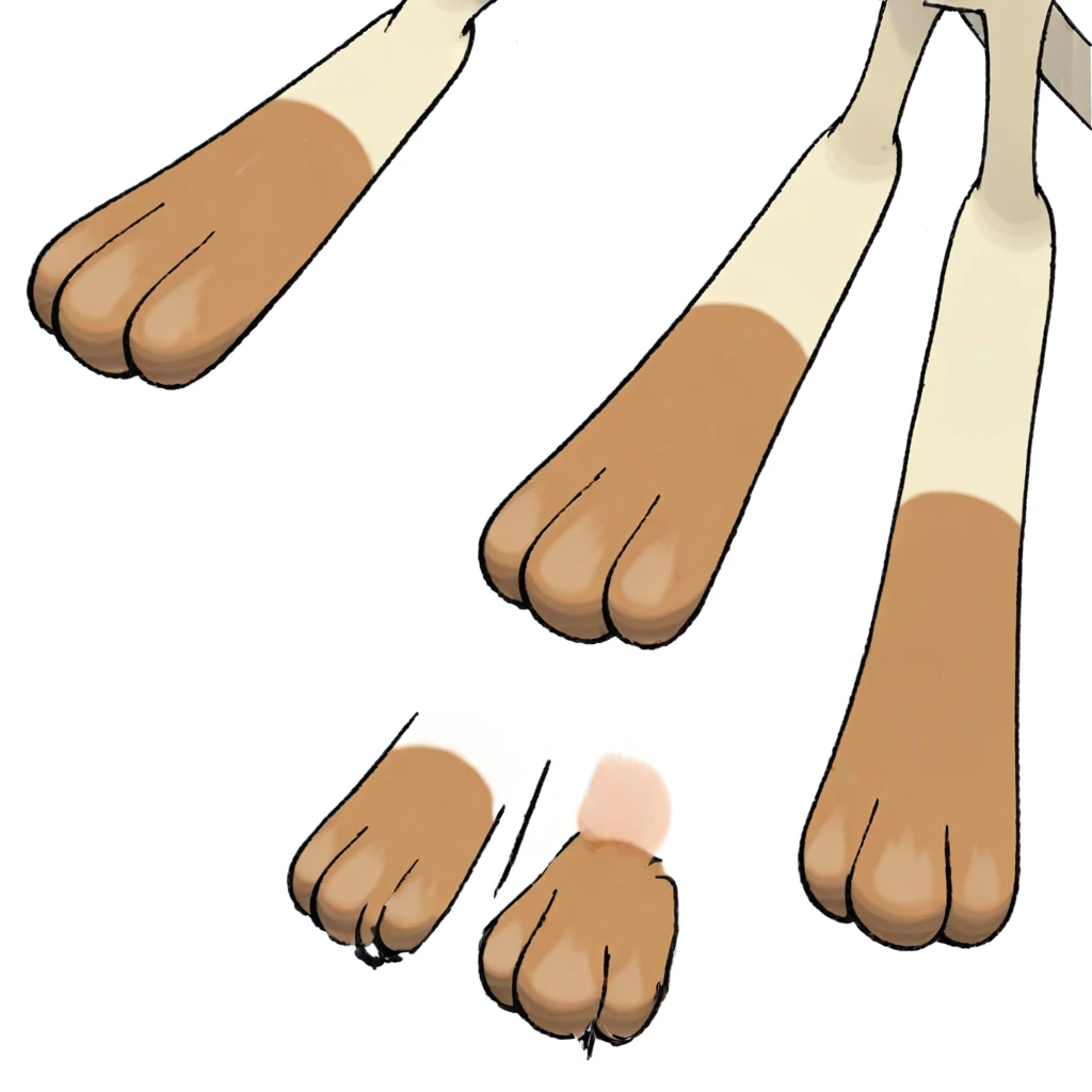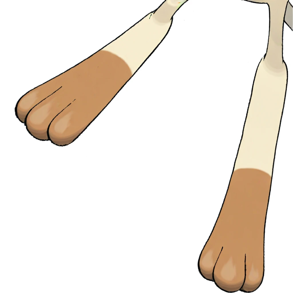 Meowth, barefoot, tan feet, brown toes, 3 toes