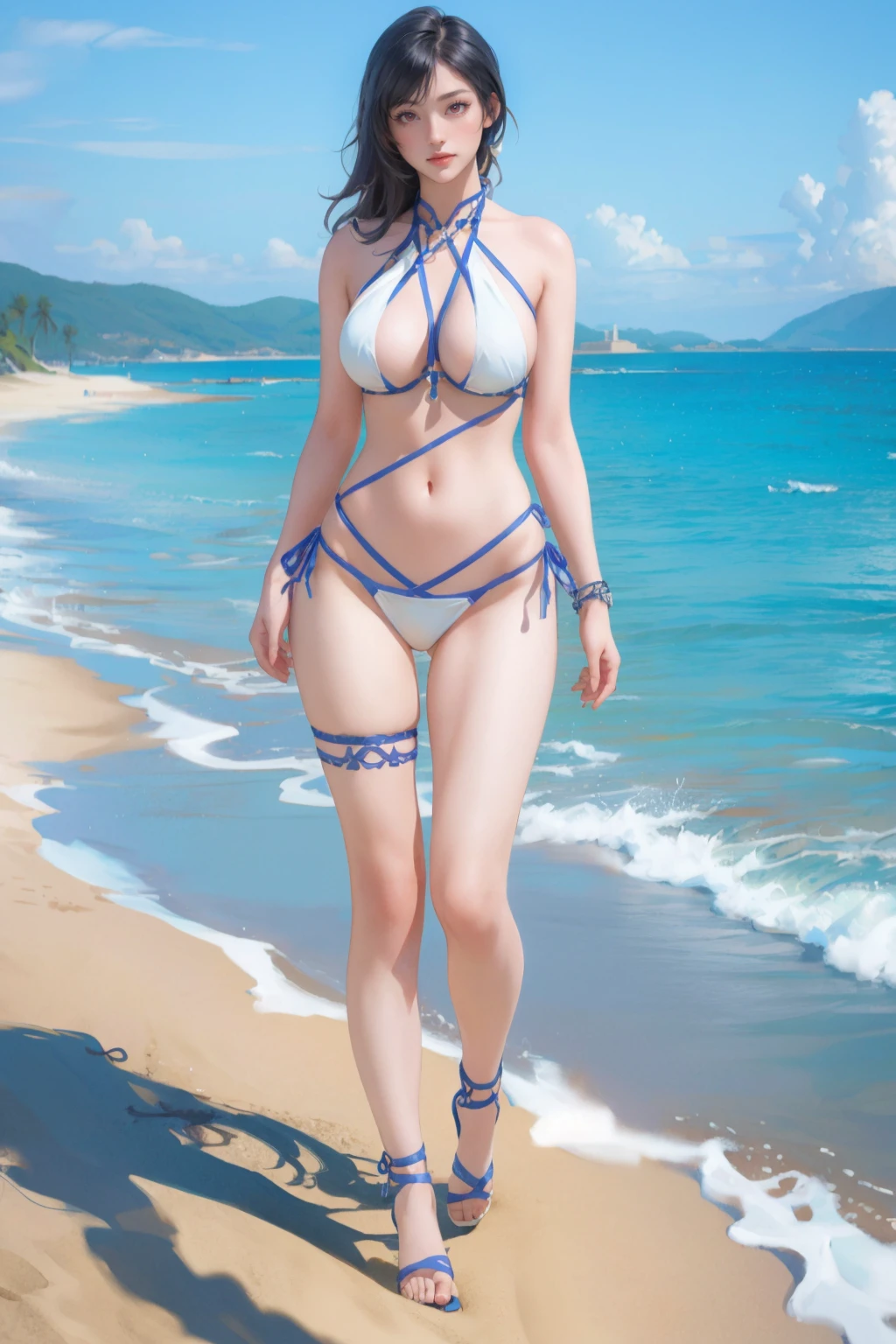 raisethesail,white bikini,white strappy heels,jewelry,thigh strap,wrist strap