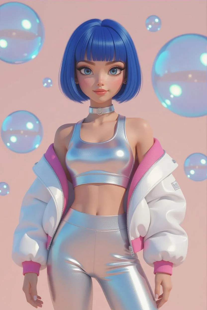char1, marcela, 1girl, solo, blue hair, blue eyes, breasts, pants, looking at viewer, short hair, navel, jacket, bangs, sports bra, choker, off shoulder, blunt bangs, midriff, smile, tight pants, torn clothes, cowboy shot, crop top, open jacket, lips, simple background, bob cut, bubble, nail polish, white jacket, yoga pants, open clotheschar1, marcela, 1girl, solo, blue hair, breasts, jewelry, blue eyes, earrings, navel, pants, short hair, hands on hips, choker, smile, jacket, pink background, nail polish, hoop earrings, off shoulder, looking at viewer, midriff, lips, crop top, tight pants, makeup, cowboy shot, pink nails, sports bra, medium breasts, bare shoulders, bangschar1, marcela, 1girl, solo, blue eyes, blue hair, jewelry, earrings, crop top, navel, breasts, pants, short hair, hoop earrings, jacket, midriff, pink background, looking at viewer, lips, off shoulder, bare shoulders, cowboy shot, gradient background, gradient, smile, medium breasts, tight pants, simple background, shiny, white jacket, tight, sleevelesschar1, marcela, 1girl, solo, jewelry, breasts, blue hair, earrings, hands in pockets, navel, looking at viewer, pants, jacket, brown eyes, choker, hoop earrings, short hair, blurry background, midriff, medium breasts, smile, open jacket, lips, cleavage, open clothes, blurry, crop top, dark-skinned female, white choker, dark skin, white jacket, cowboy shotProvided four different prompt you just play with them or you can create by yourself