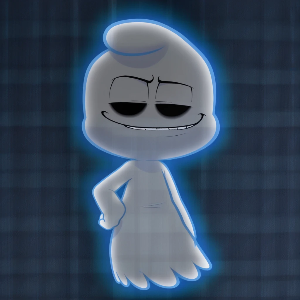 1boy, male, male focus, humanoid, ghost, solo, solo focus, translucent body, blue hue, blue outline, black eyes, blue tongue