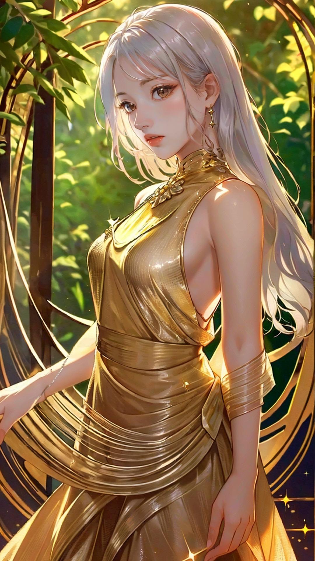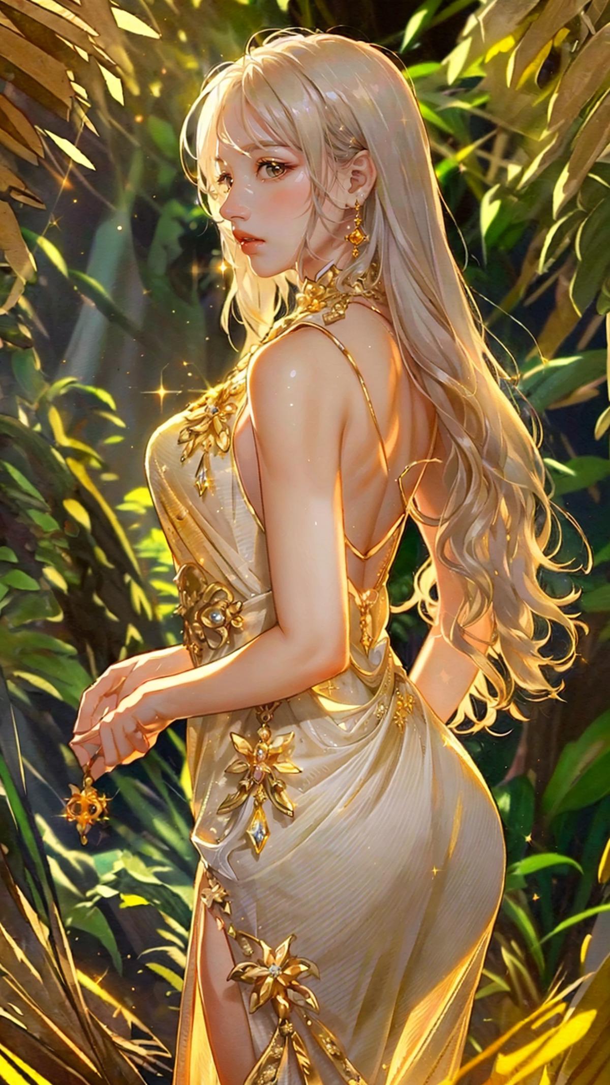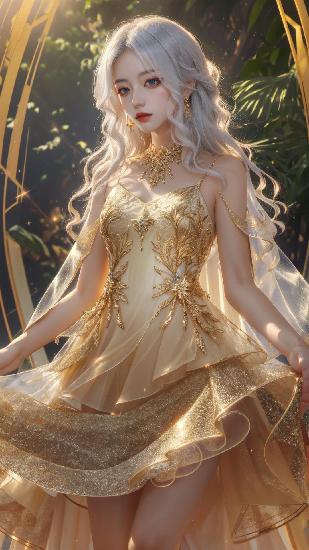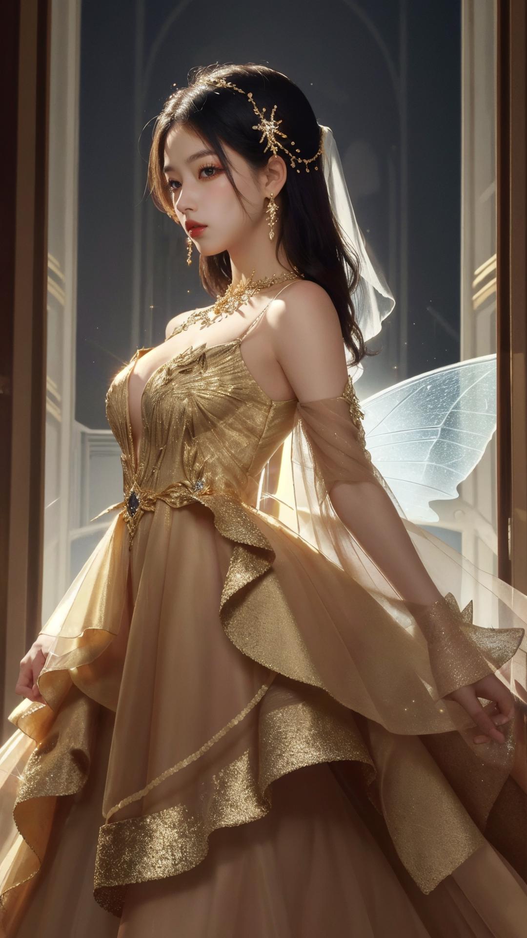 jinmeng, golden layered dress, sparkle, see-through, jewelry其他提示词: