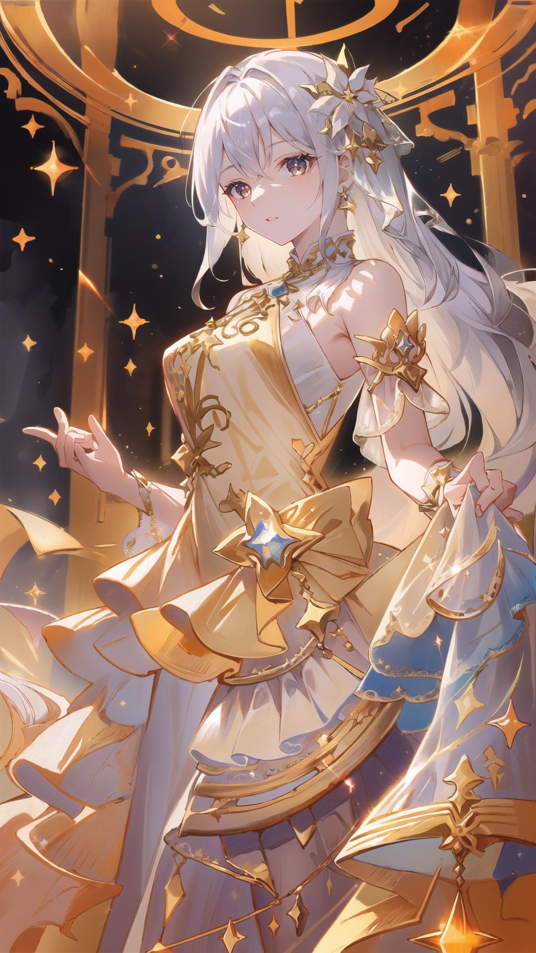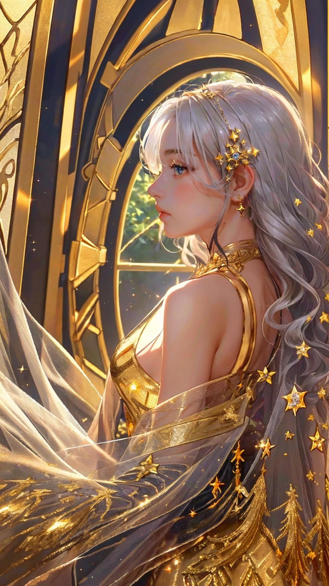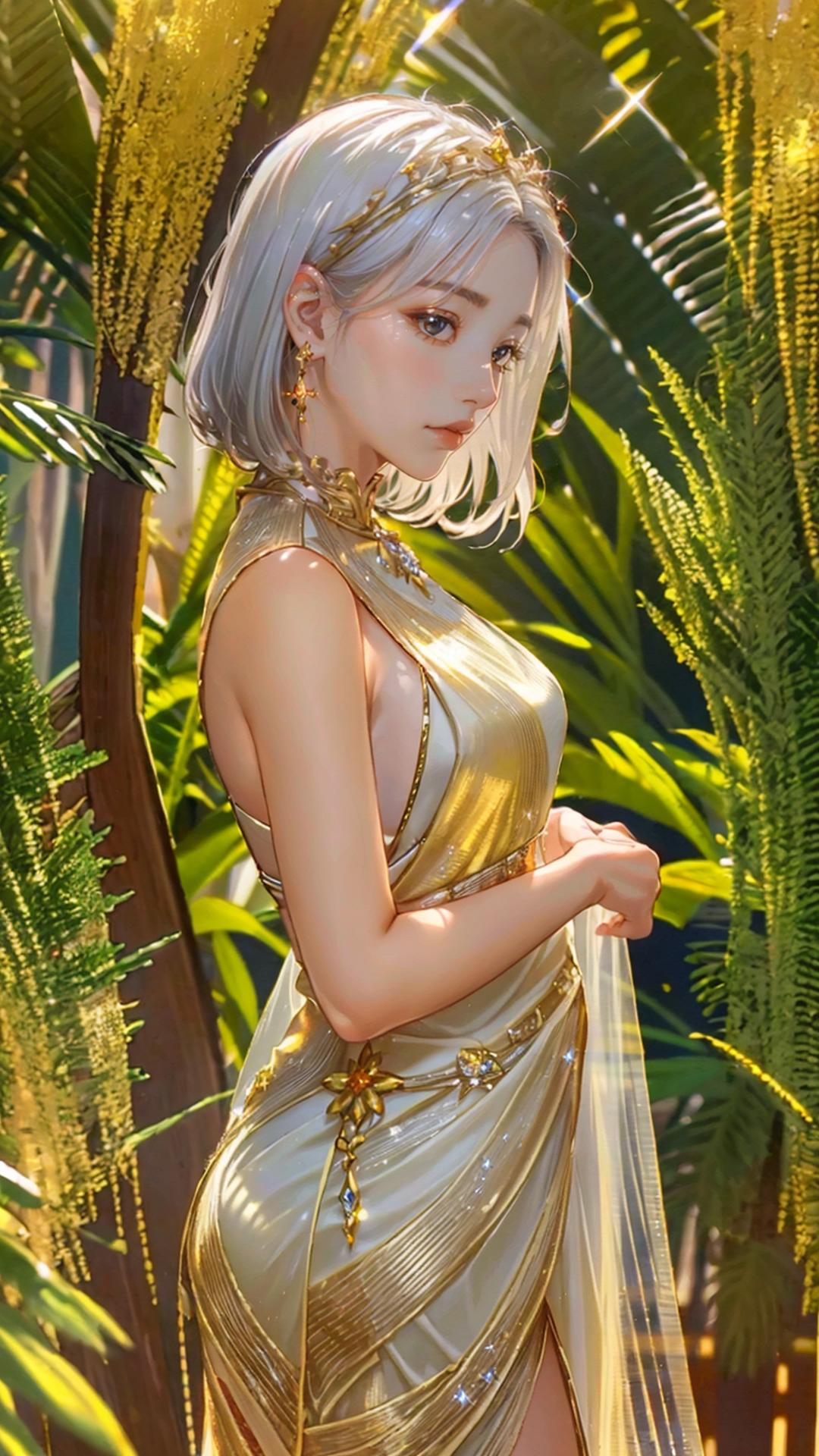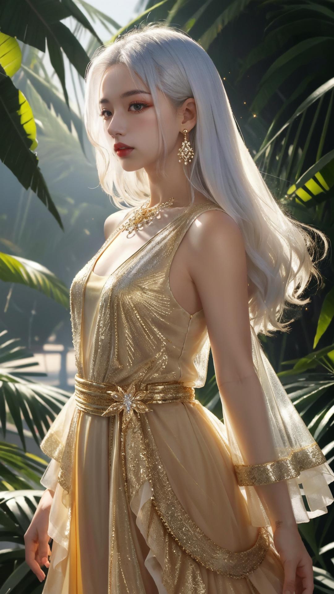 jinmeng, golden layered dress, sparkle, see-through, jewelry其他提示词: