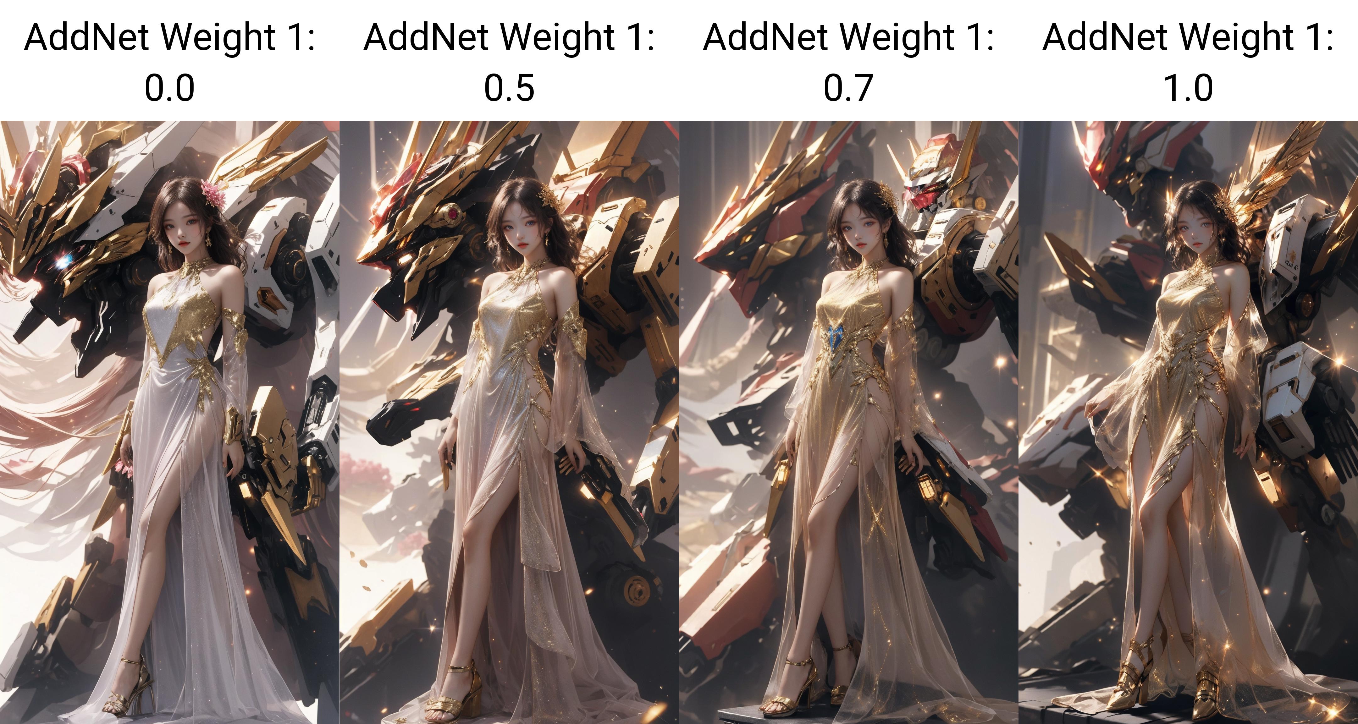 训练集依据个人审美筛选了裙子的服饰版型。可尝试搭配汉服,机甲,会有意想不到的效果。