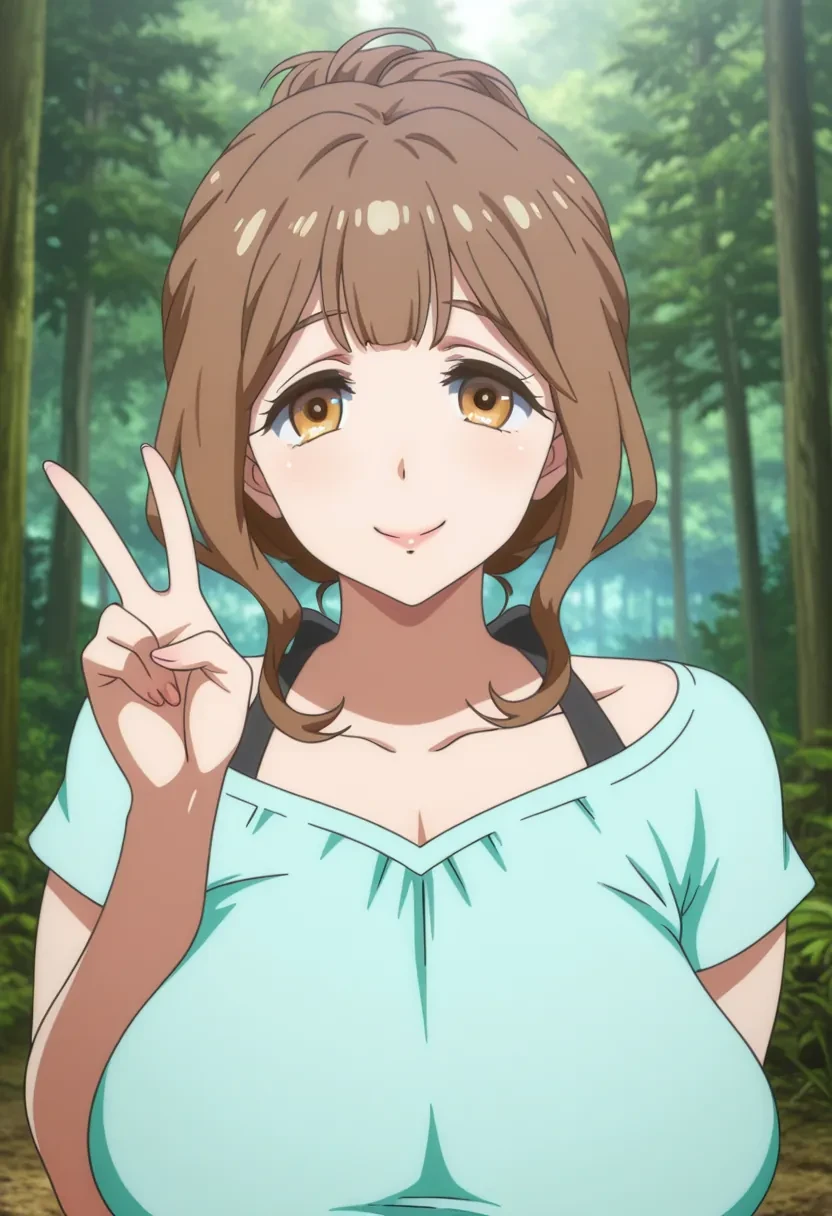 Kazami Torino, brown hair, breasts, brown eyes, large breasts, mature female,Outfit: