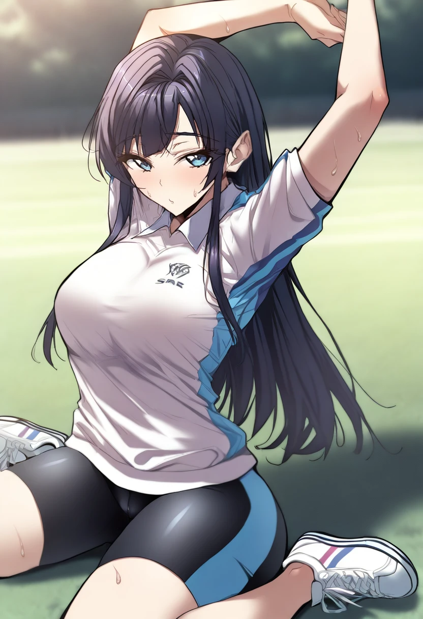 Gym Outfit: "gym uniform, bike shorts, sneakers"