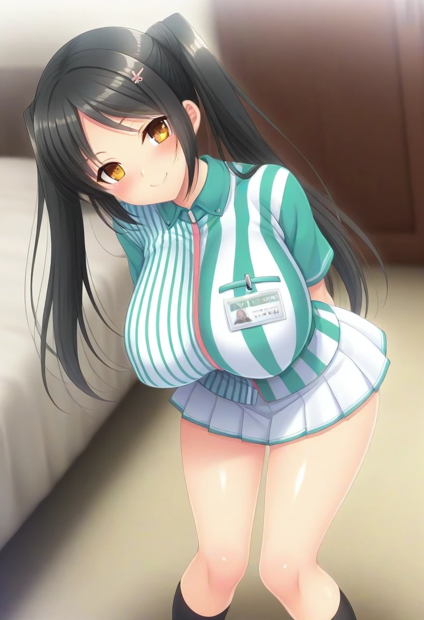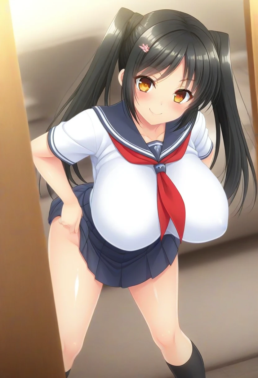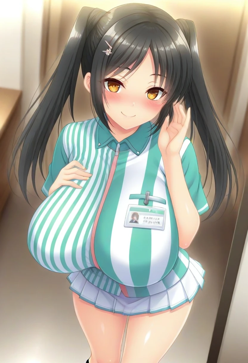 Recommend Prompt:An Shimanami, amber eyes, black hair, long hair, twintails, sidehair,