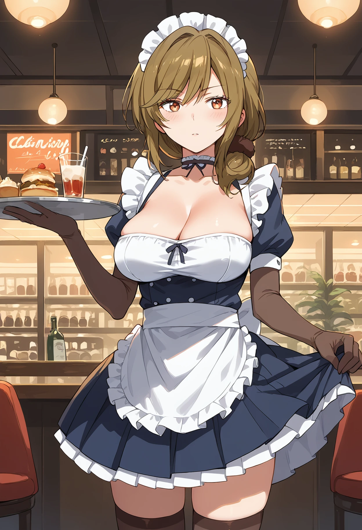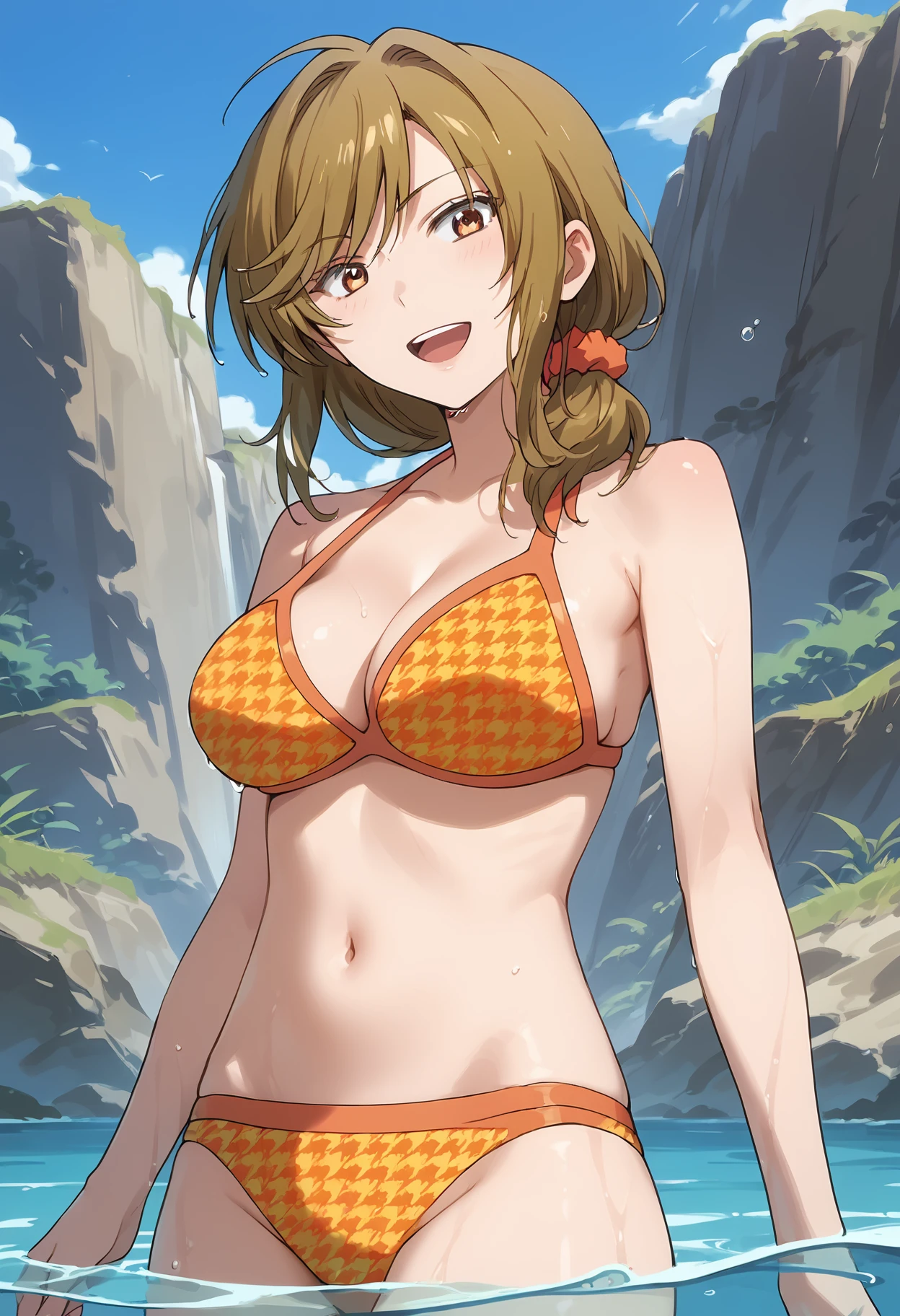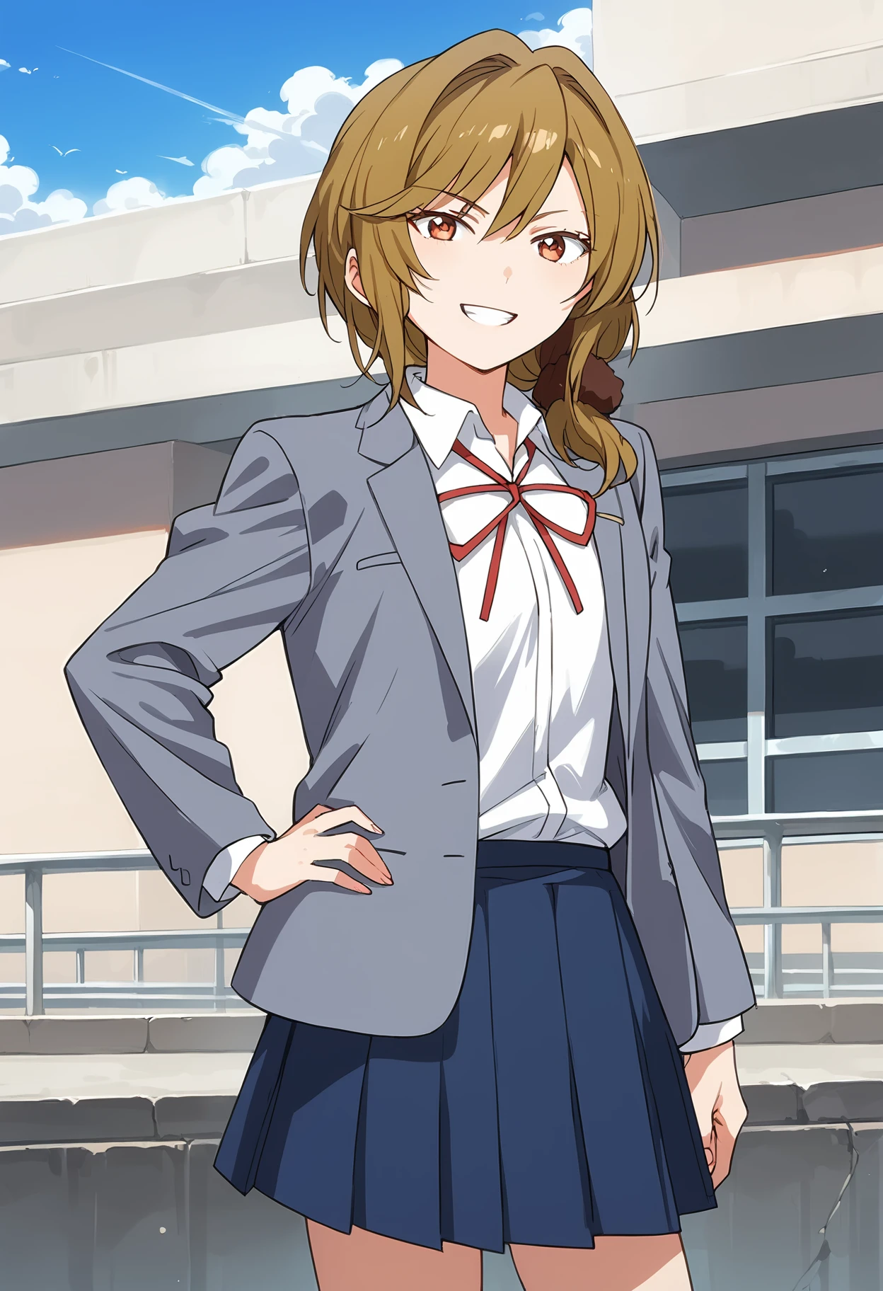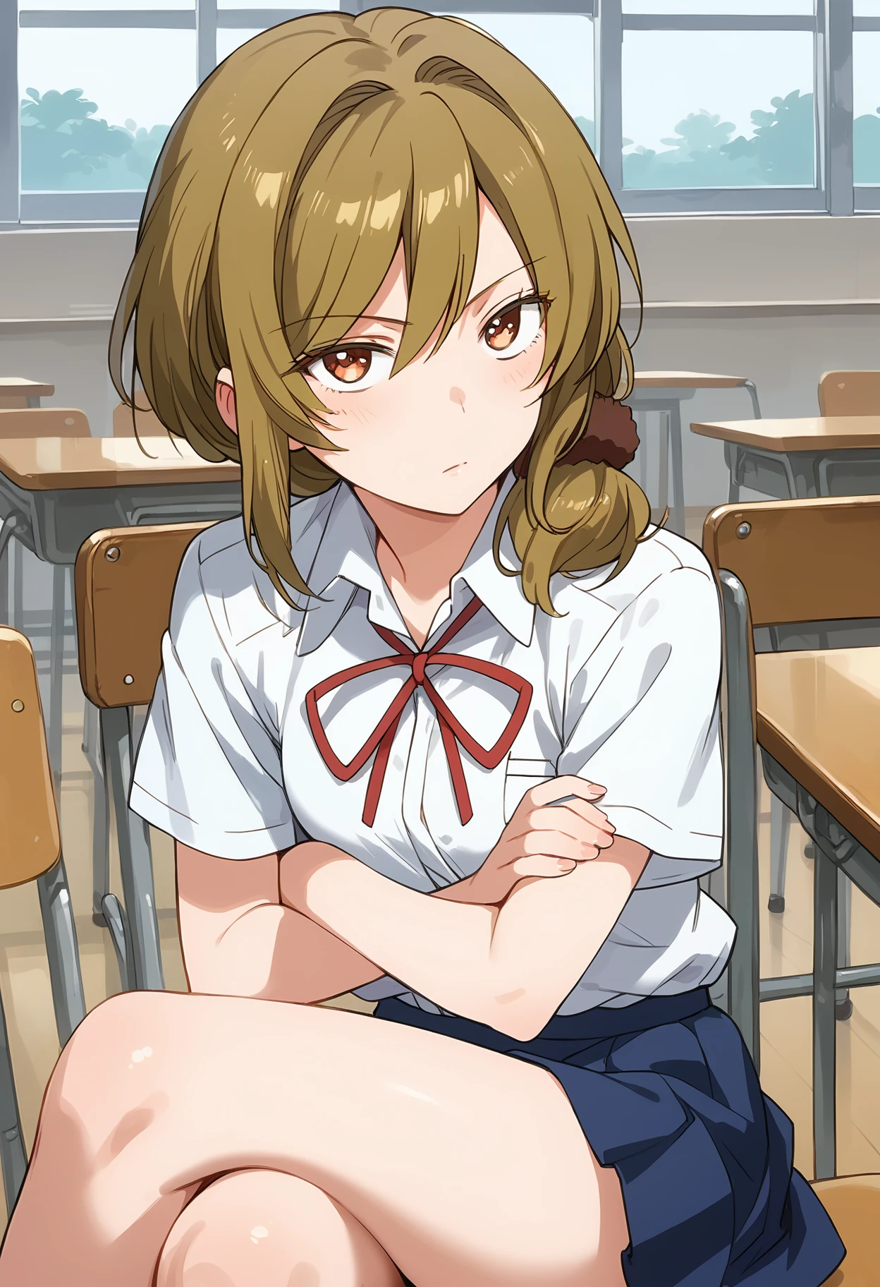 seoyuzuki, brown hair, brown eyes, short hair, low side ponytail, scrunchie