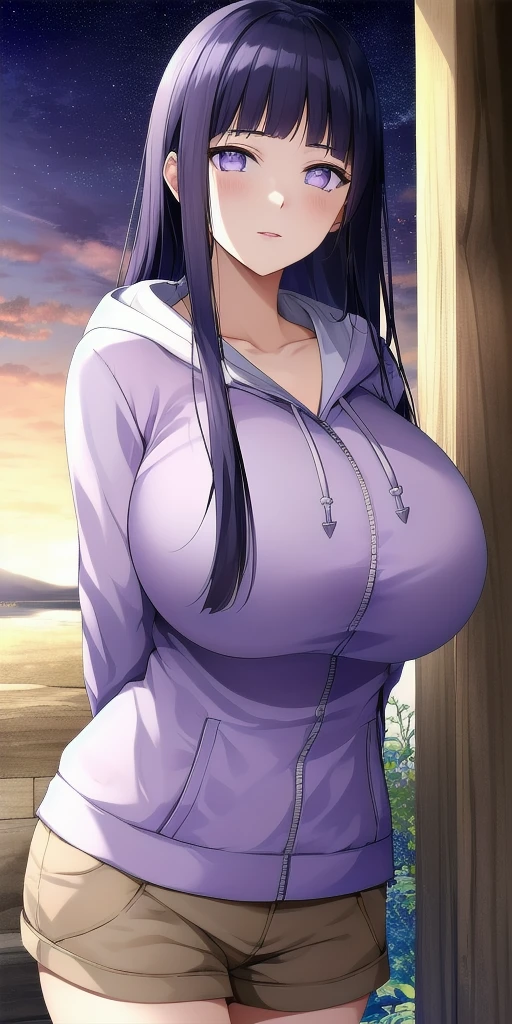 Purple_cropped_hoodie_White_shirt_Brown_shorts_Short_over_long_sleeves: Her MILF boruto attire.