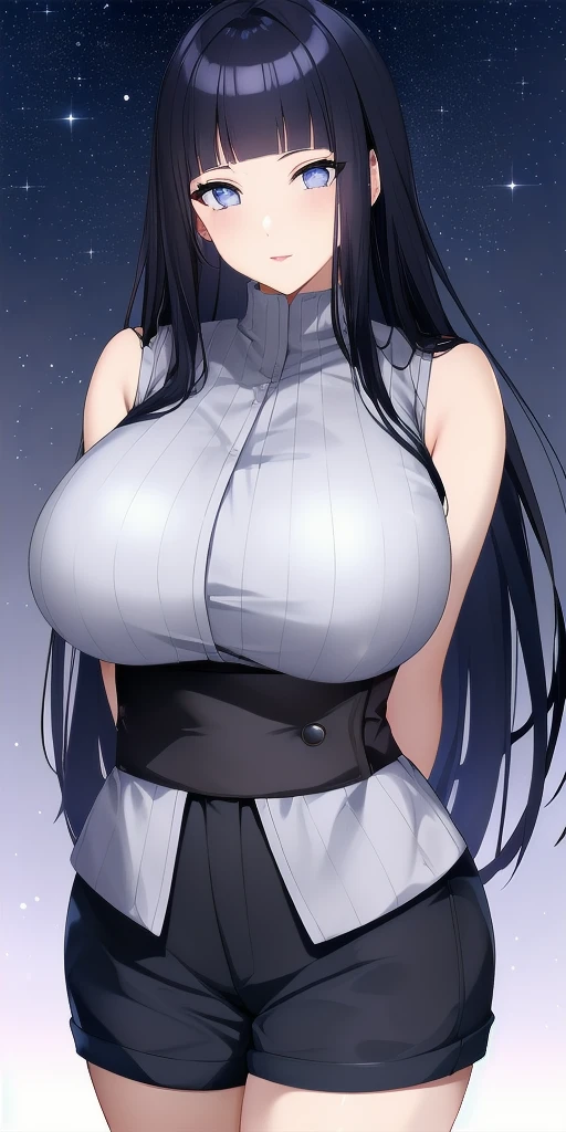 Sleeveless_Turtleneck_White_vertical-striped_shirt_Grey_sash_Black_short_shorts: Her Naruto the last movie attire
