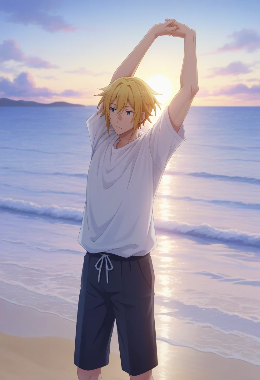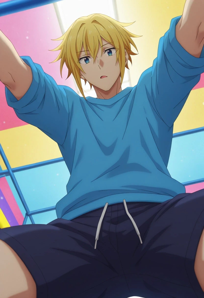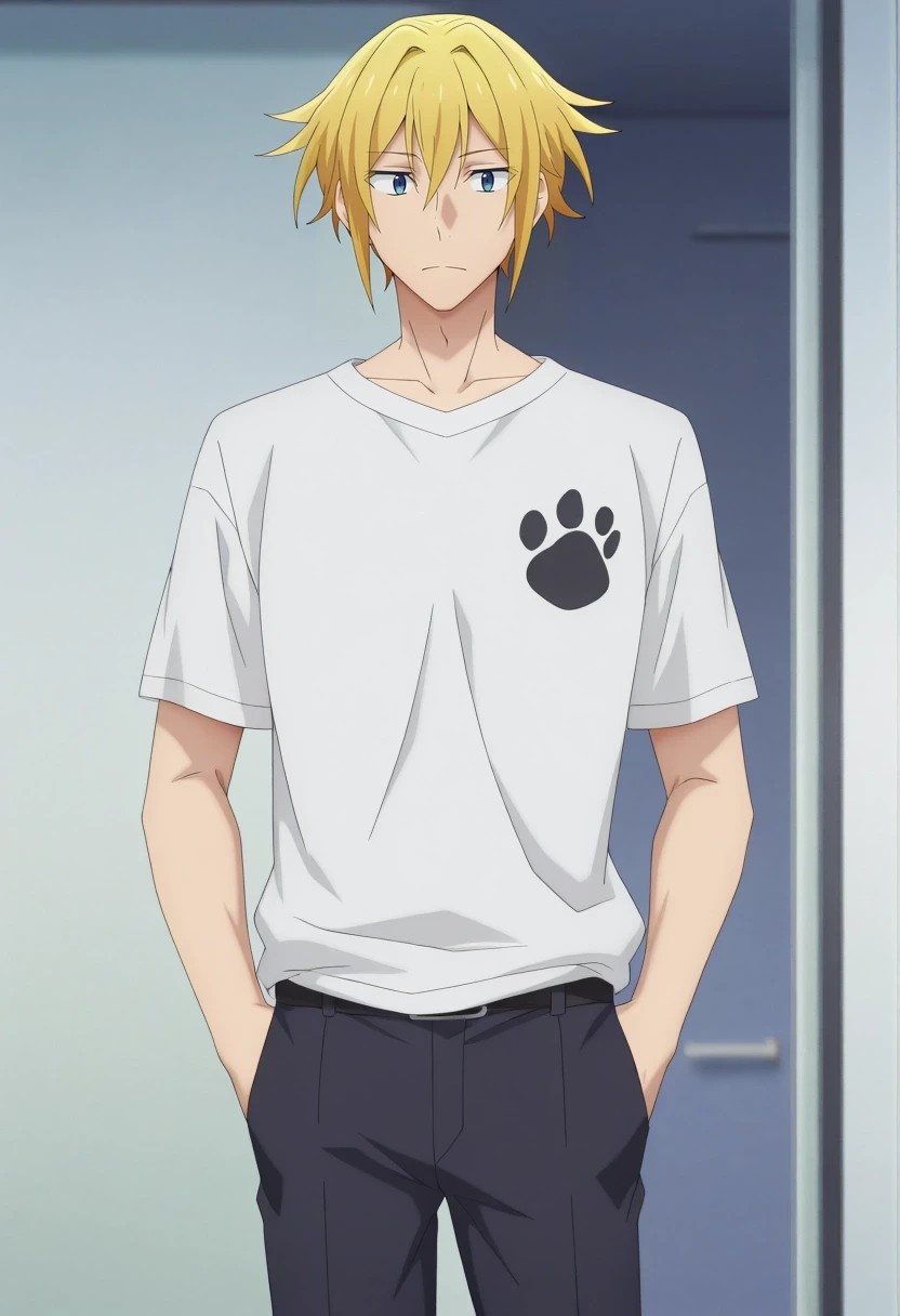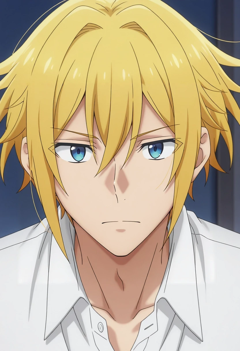 taiga_hirano, blonde hair, blue eyes, short hair, hair between eyes