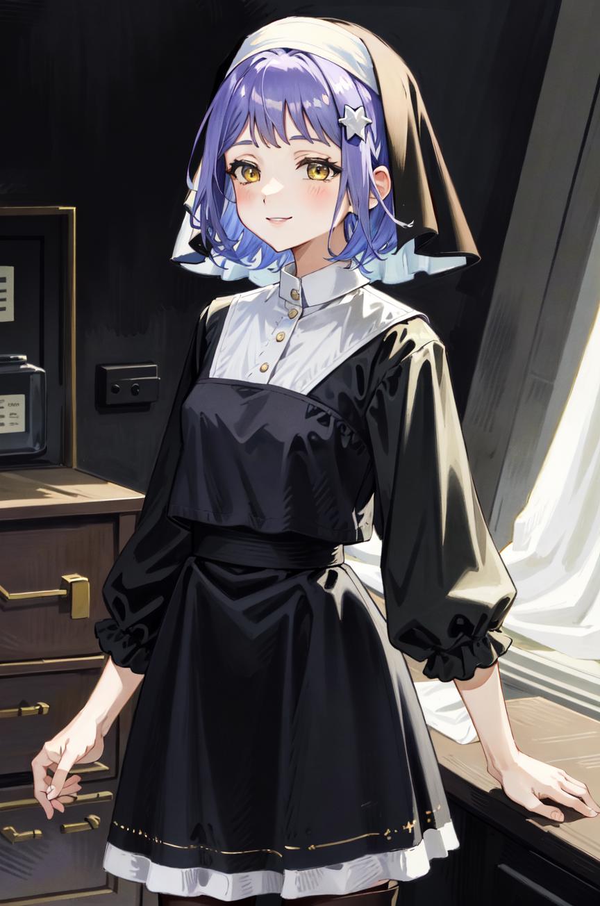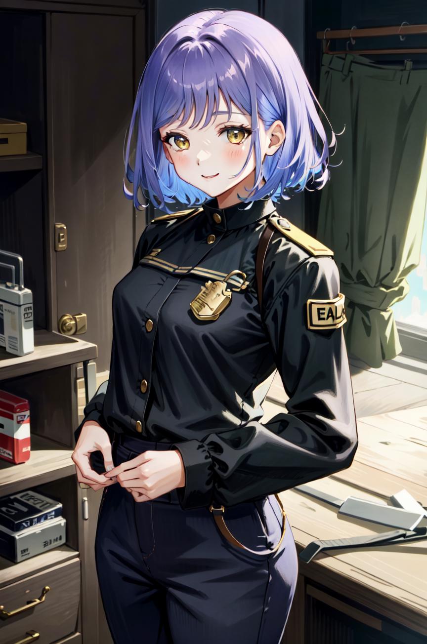 ShinoRu, short hair, purple hair, yellow eyes, small breasts