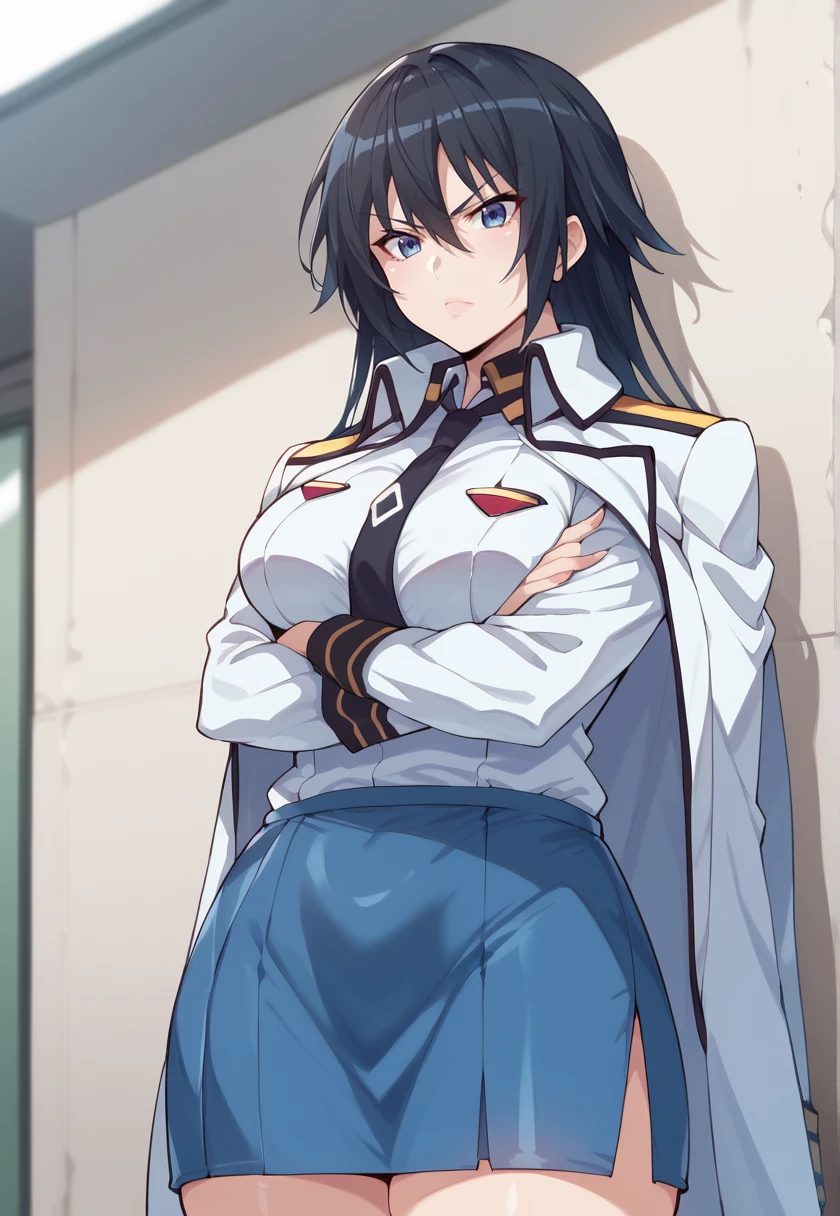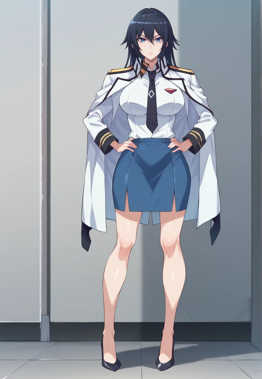 ReiriSuit, school uniform, white shirt, jacket on shoulders, black necktie, military uniform, blue skirt, pencil skirt, military, white jacket