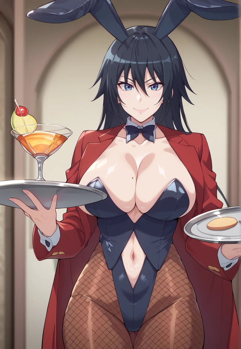 ReiriSuit, school uniform, white shirt, jacket on shoulders, black necktie, military uniform, blue skirt, pencil skirt, military, white jacketReiriBikini, swimsuit, bikini, navel, white bikini, cleavage, criss-cross halter, layered bikini, multi-strapped bikini, chockerReiriBunny, black bowtie, rabbit ears, playboy bunny, cleavage, fishnet pantyhose, black leotard, detached collar, highleg leotard, collarbone, bare shoulders, navel