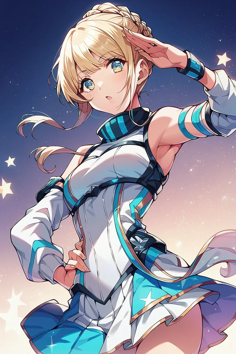 Use Noa and 1girl. For a variety of clothes, take as an example prompts from sample images. Blond hair, bangs (updo or hair buns) for hairstyle. Everything works well. Hentai too.